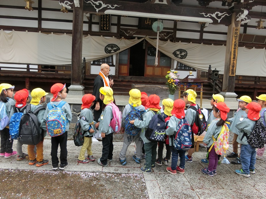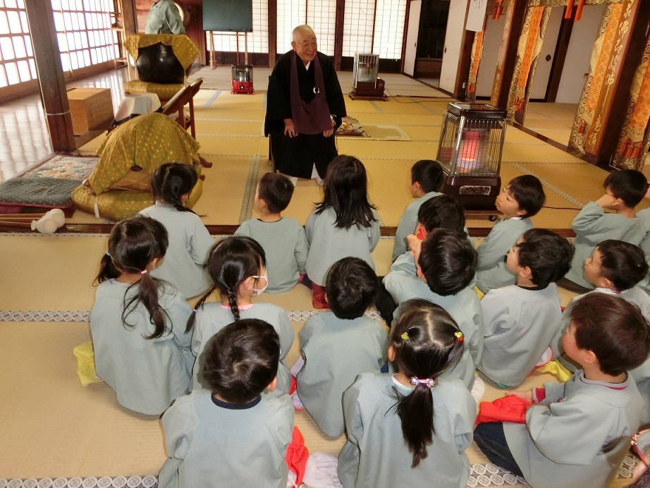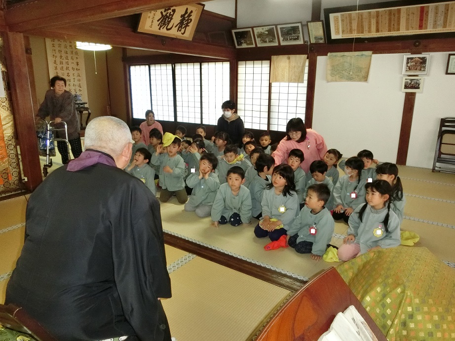 住職さんの話しを真剣に聞いている姿が見られました。子どもたちにも分かりやすい話で頷いたりしていました。