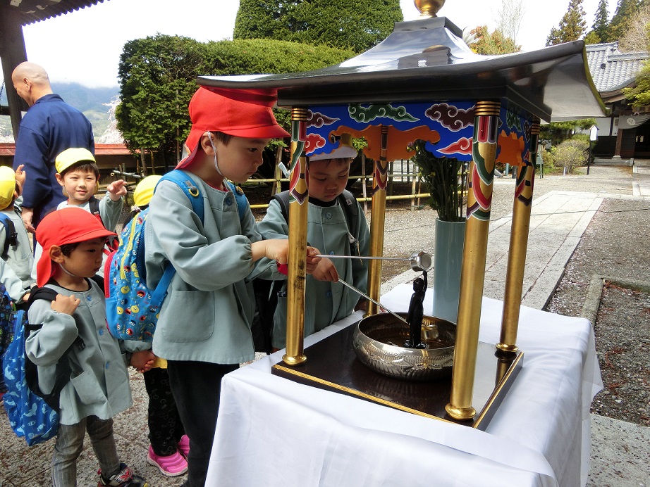 お釈迦様に甘茶を掛ける前に合掌することを知りました。