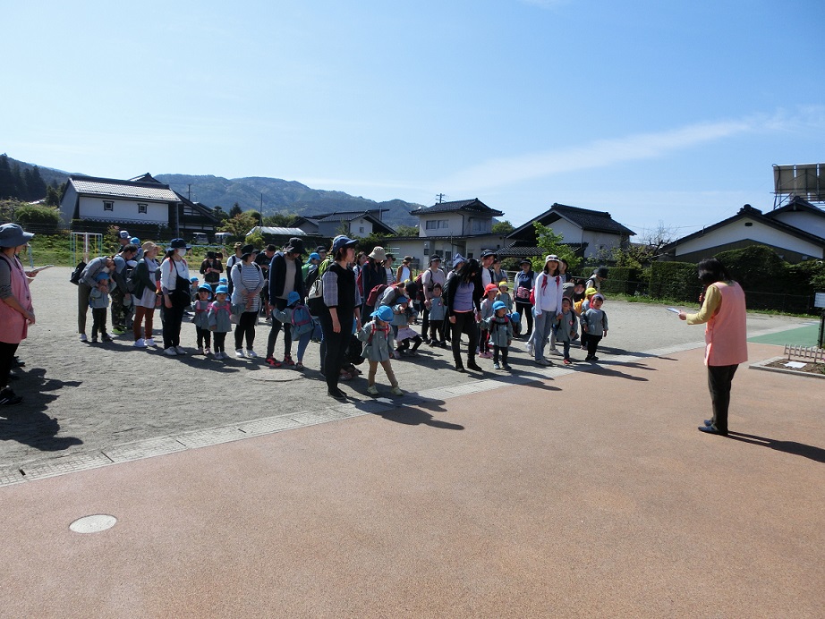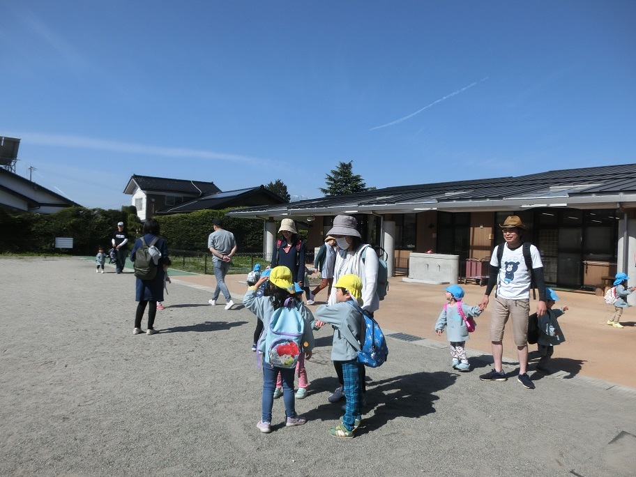 東みのわ保育園では親子遠足に行ってきました。親子で登園です。