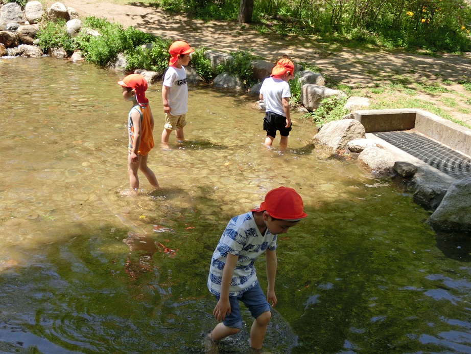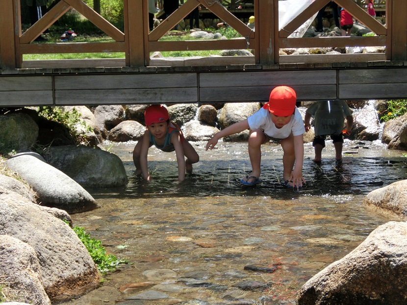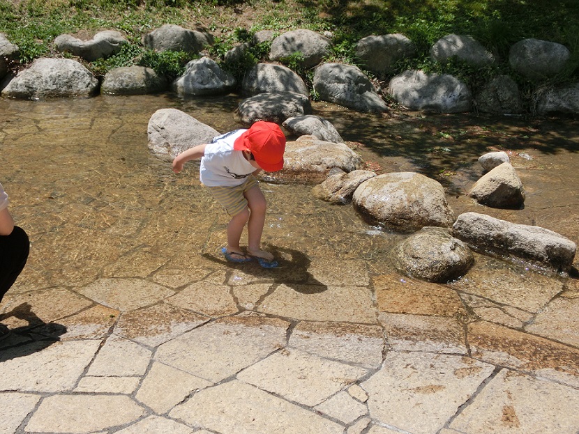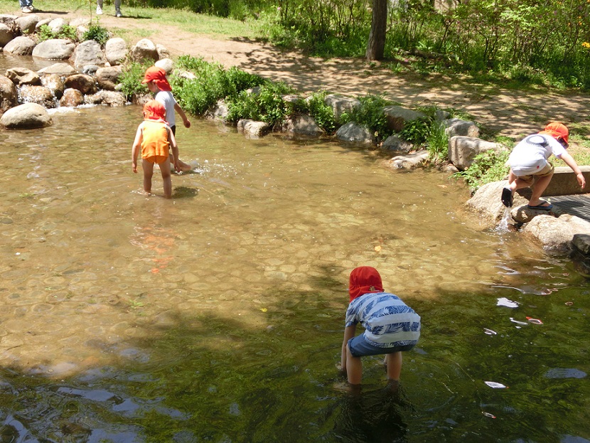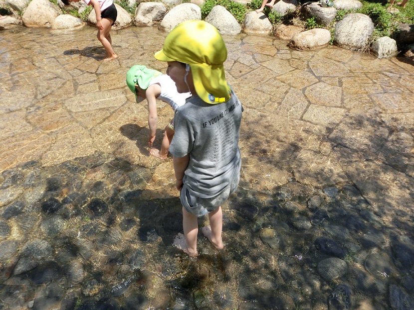 いい天気なのでこちらでは早速水遊びが始まりました。