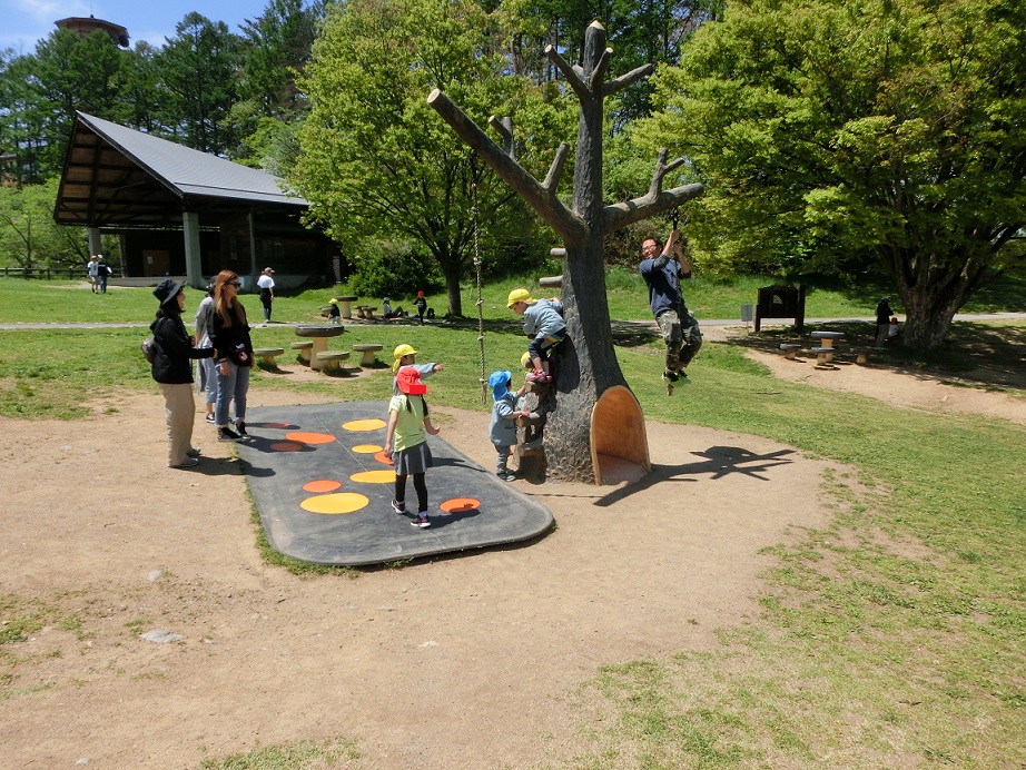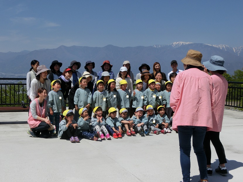 この日は県下各地の保育園や幼稚園の遠足だったようで、偶然にも筑北村のひわまり保育園の従弟とここで会えました。記念に「ハイ!ポーズ!」なかなかない偶然ですね。