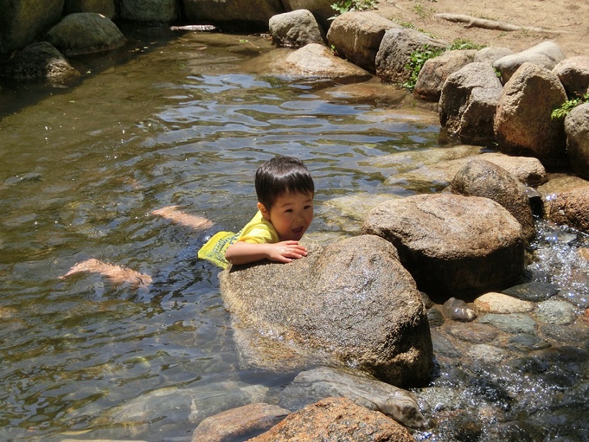 身体中で水の感触を味わっている姿にいい天気の日で良かったと思いました。