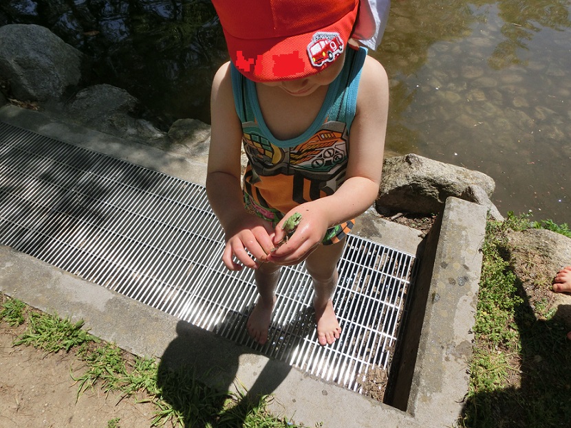 「カエルってこうやって泳ぐんだね。」(じっくりカエルが泳ぐのを観察していました。)