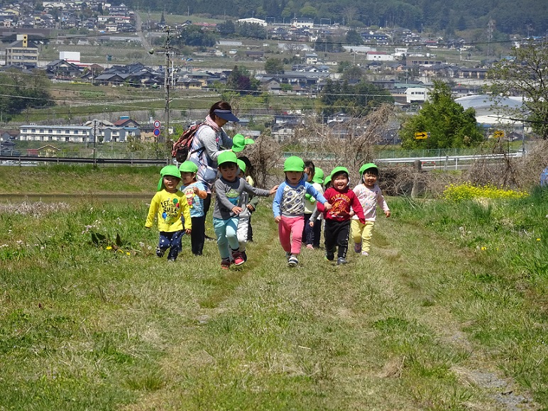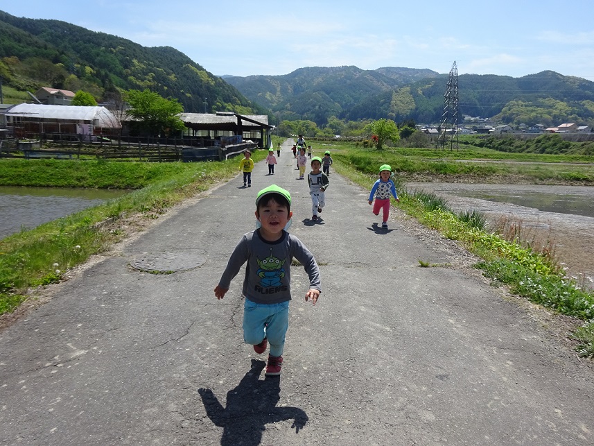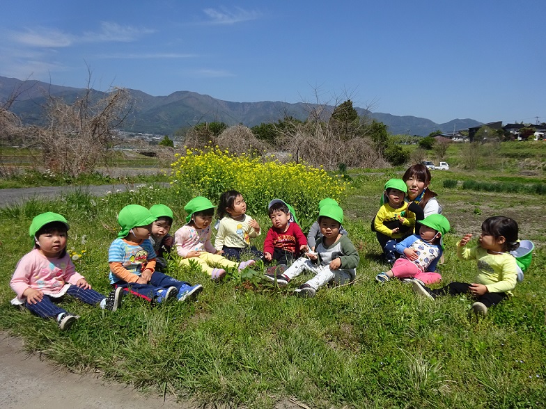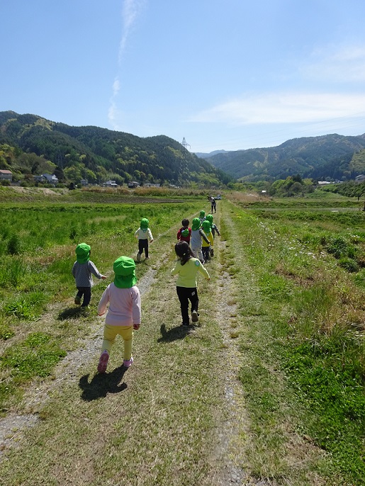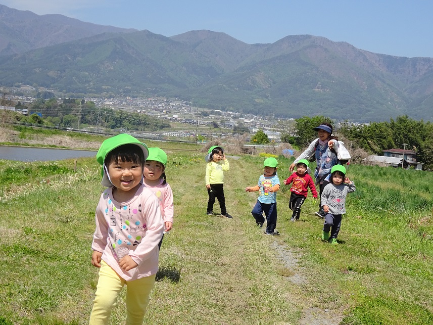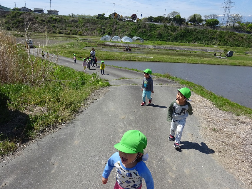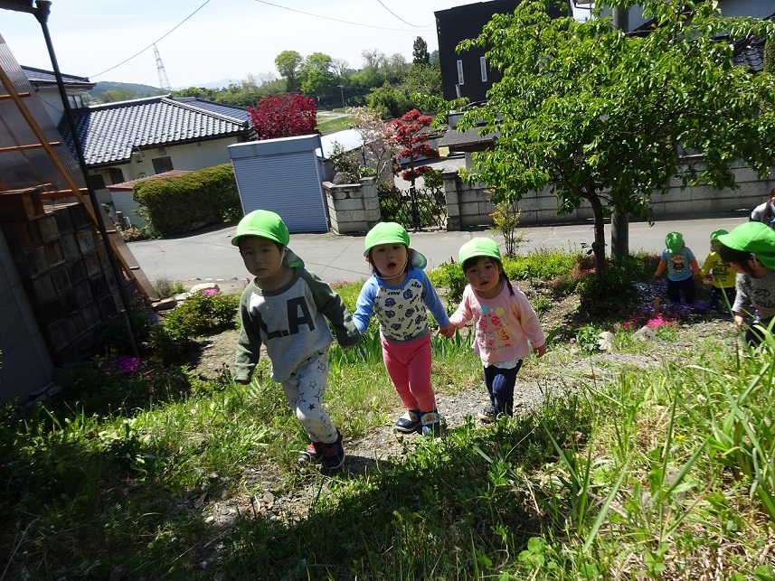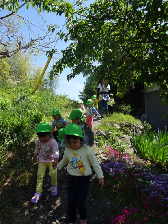こあら組(2歳児)が散歩に出掛けました。天気も良くて気持ちいい。