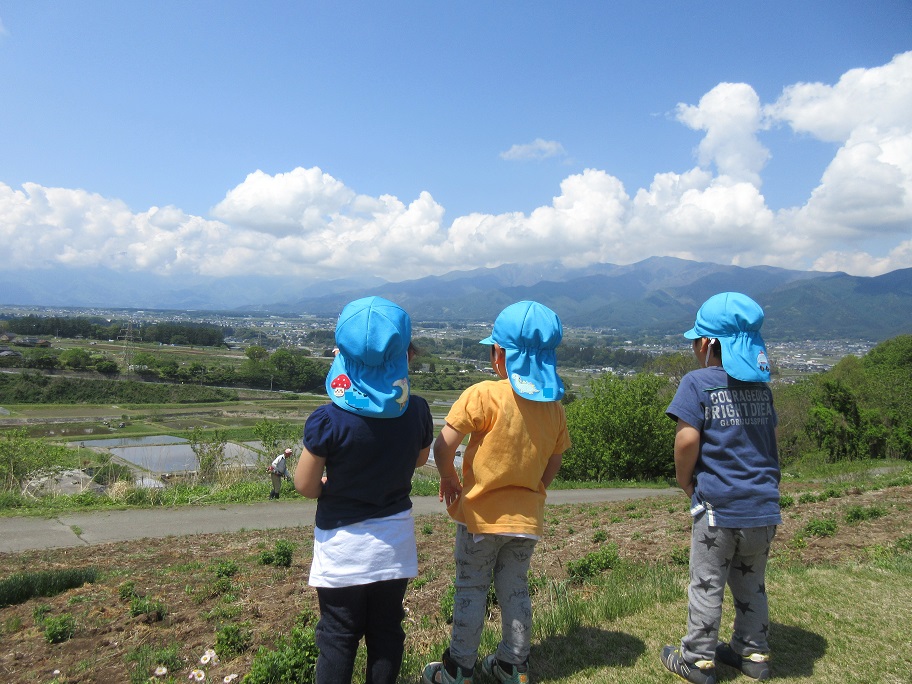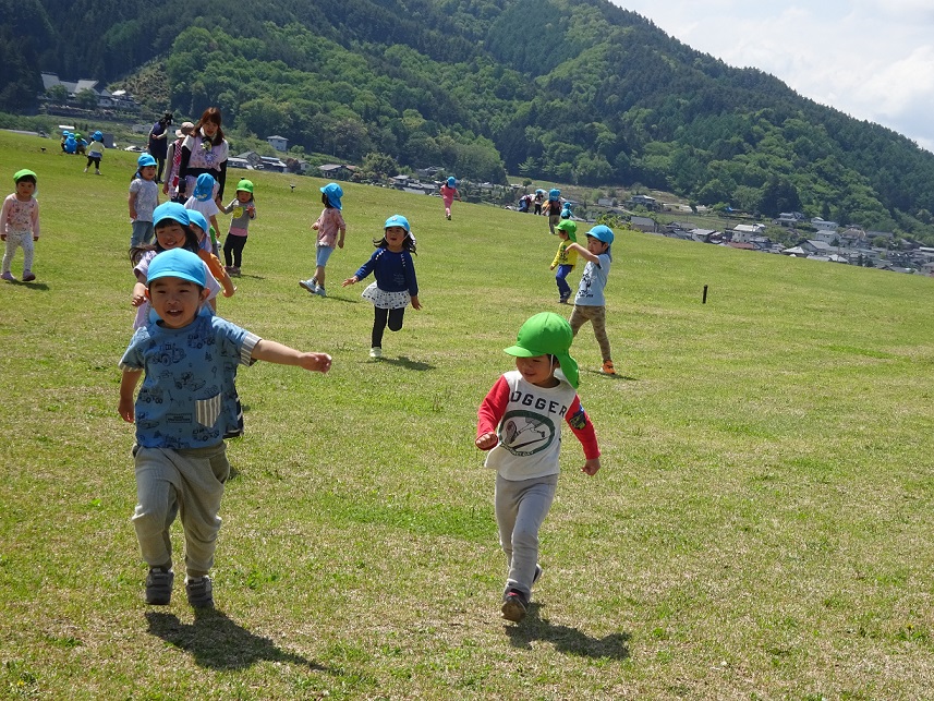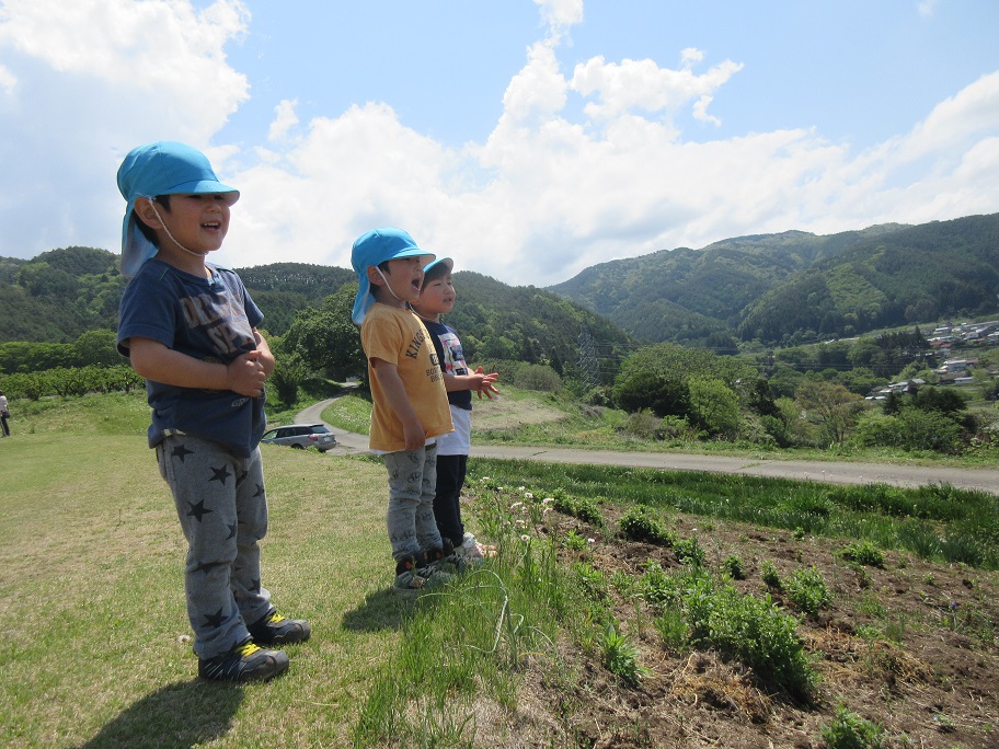広くてよく手入れのされている上ノ平で自分達の生まれた町を見ながら、伸び伸びと遊んでほしいと思います。