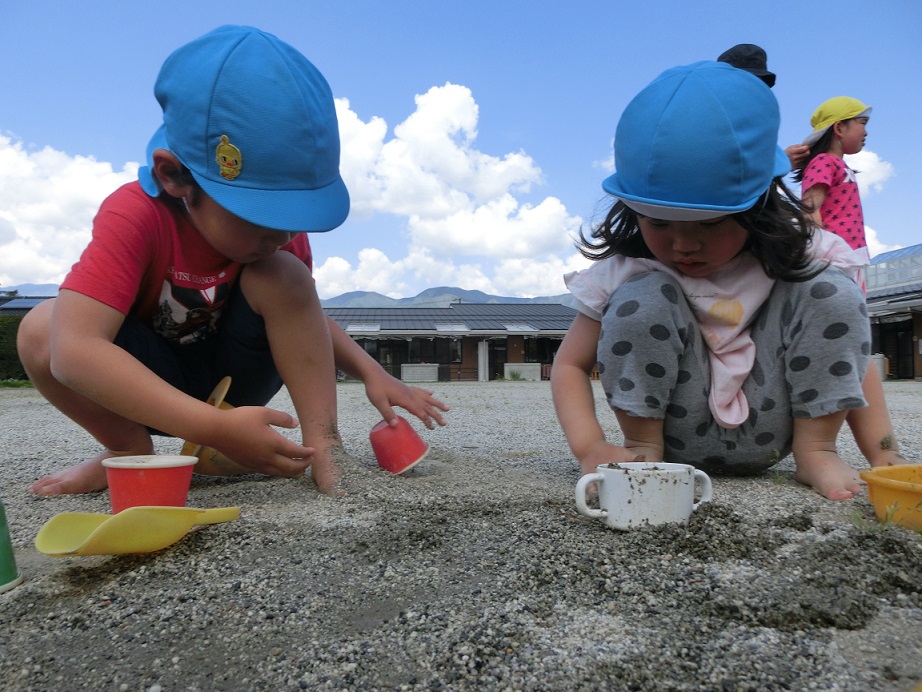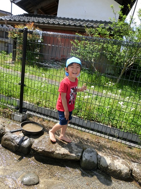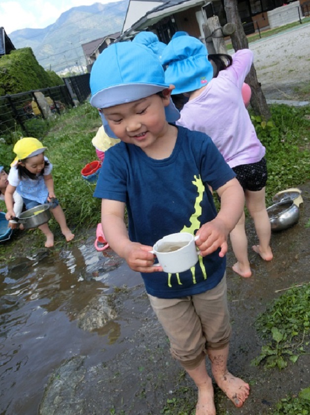 泥や水の感触を楽しんでほしいと思います。