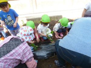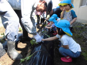 地域の方は子どもたち一人ひとりに丁寧に植え方を教えて下り、
