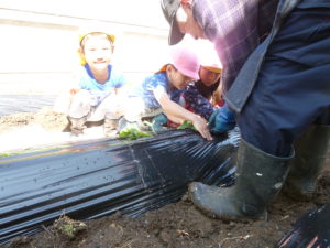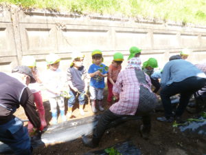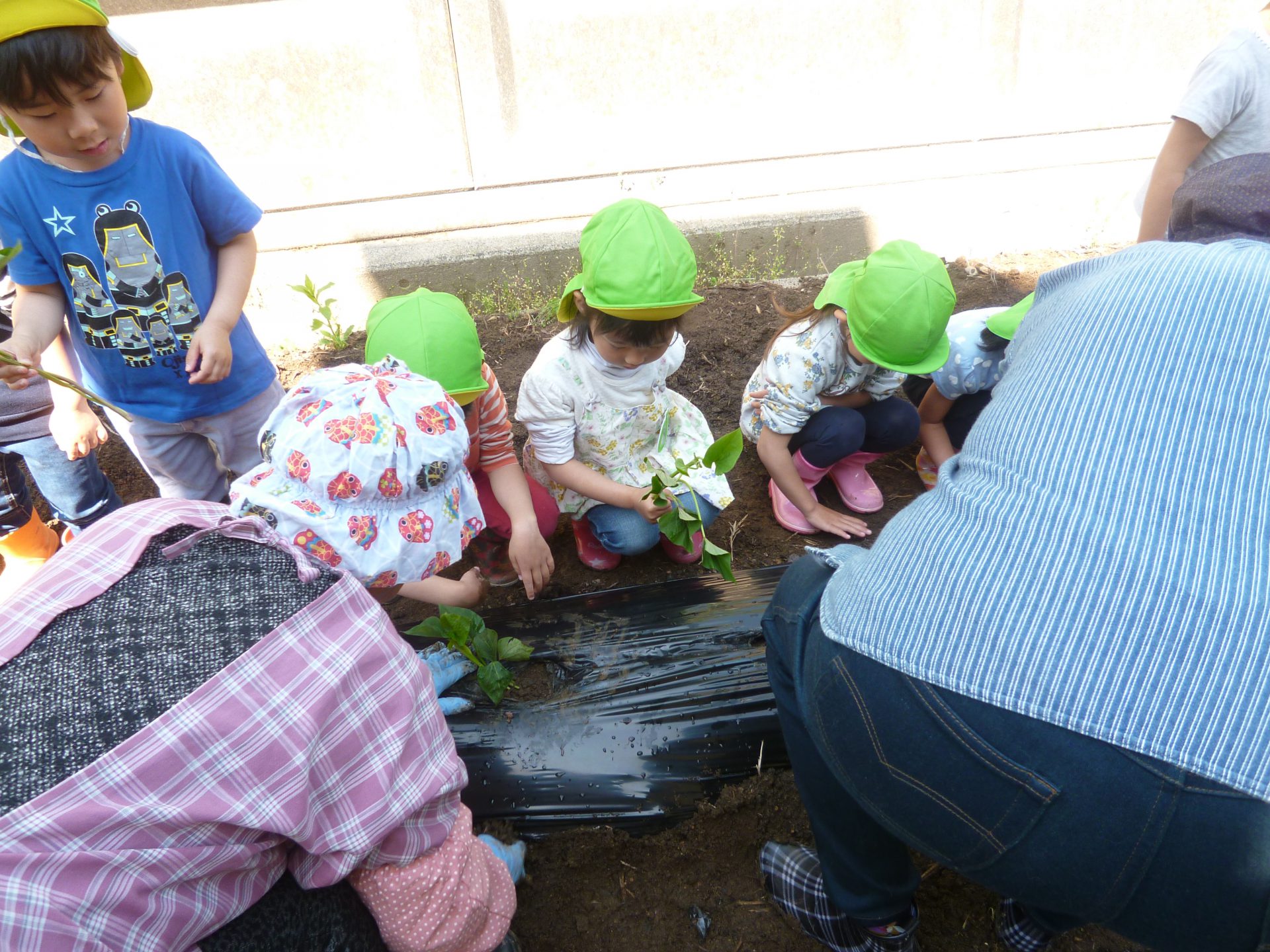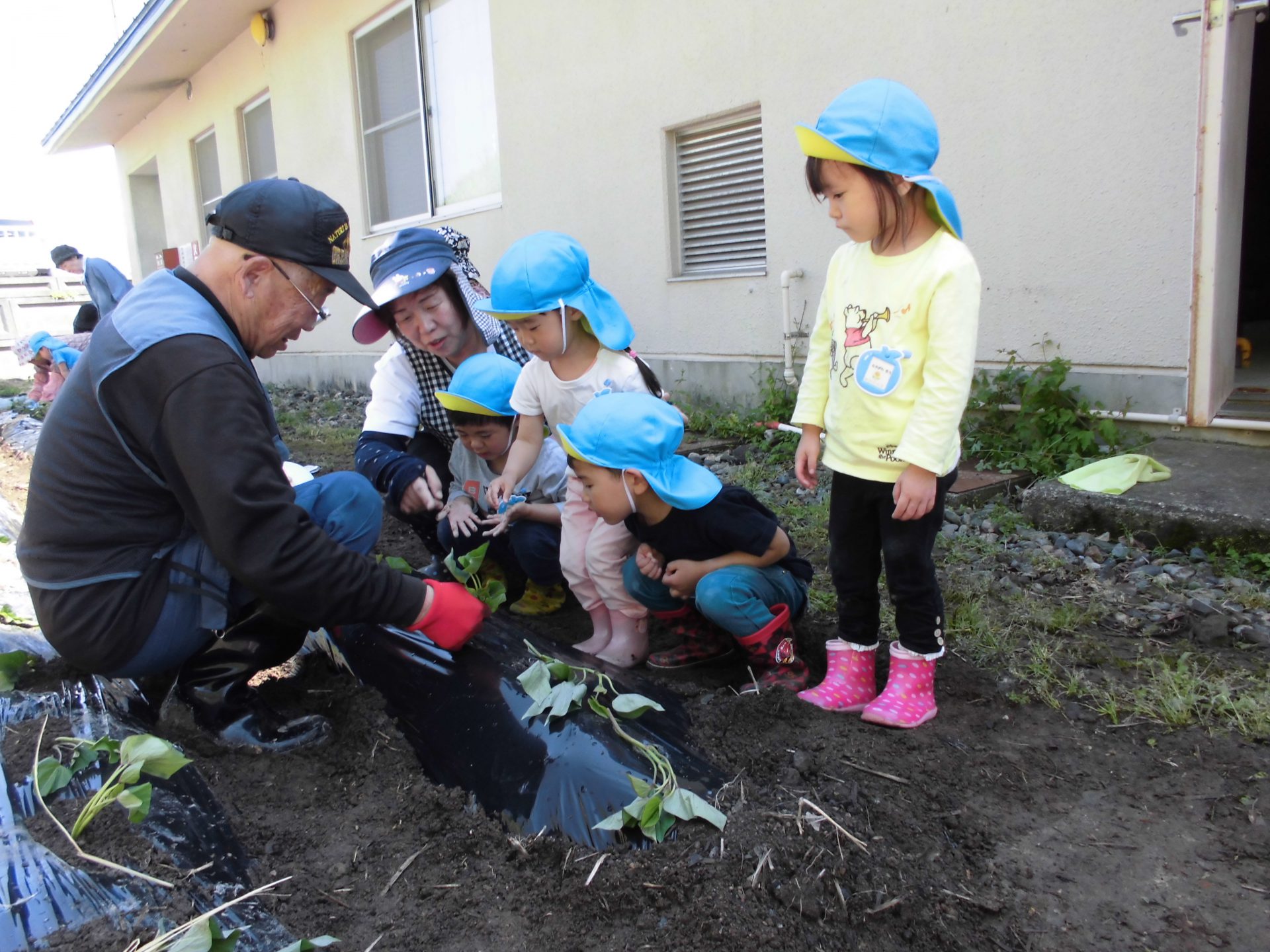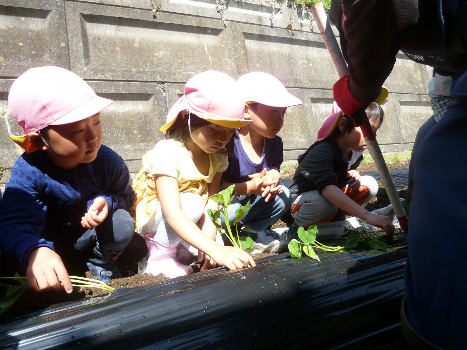 ☆美味しいサツマイモができるように真剣な顔つきの年長さん