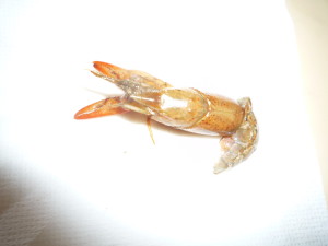 朝、子ども達がザリガニのお家を覗くと「先生ザリガニが死んじゃった」と子ども達の声でした。覗いたときは確かに死んでしまったと思ったのですが数が減っていません。持ち上げると殻だけがきれいに残っていました。