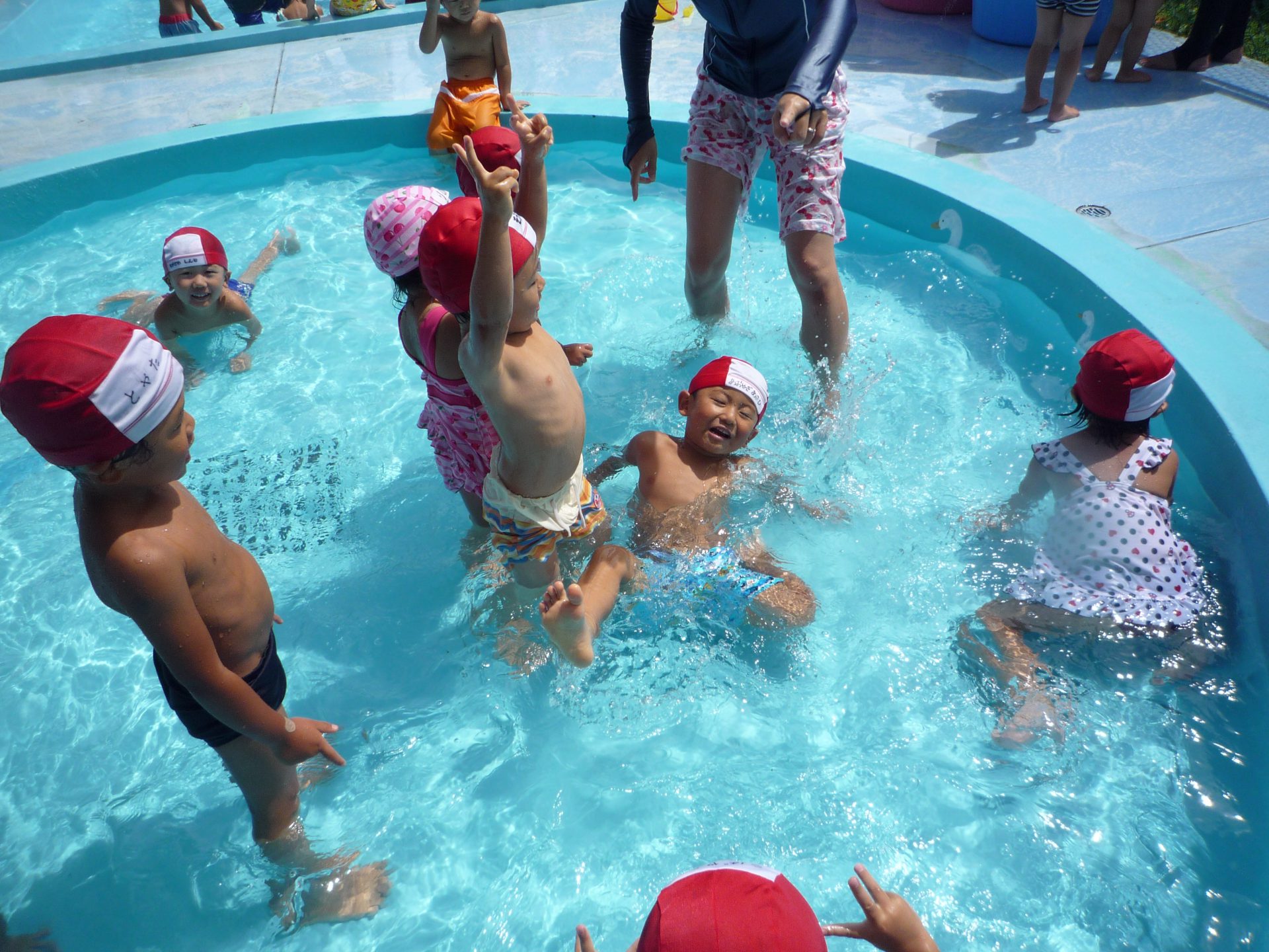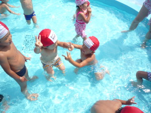 そんな子ども達はプールでカエルジャンプやわにさん泳ぎを楽しんでいたのですが「ザリガニだぞ~」と怒った顔でザリガニになりきっていました。