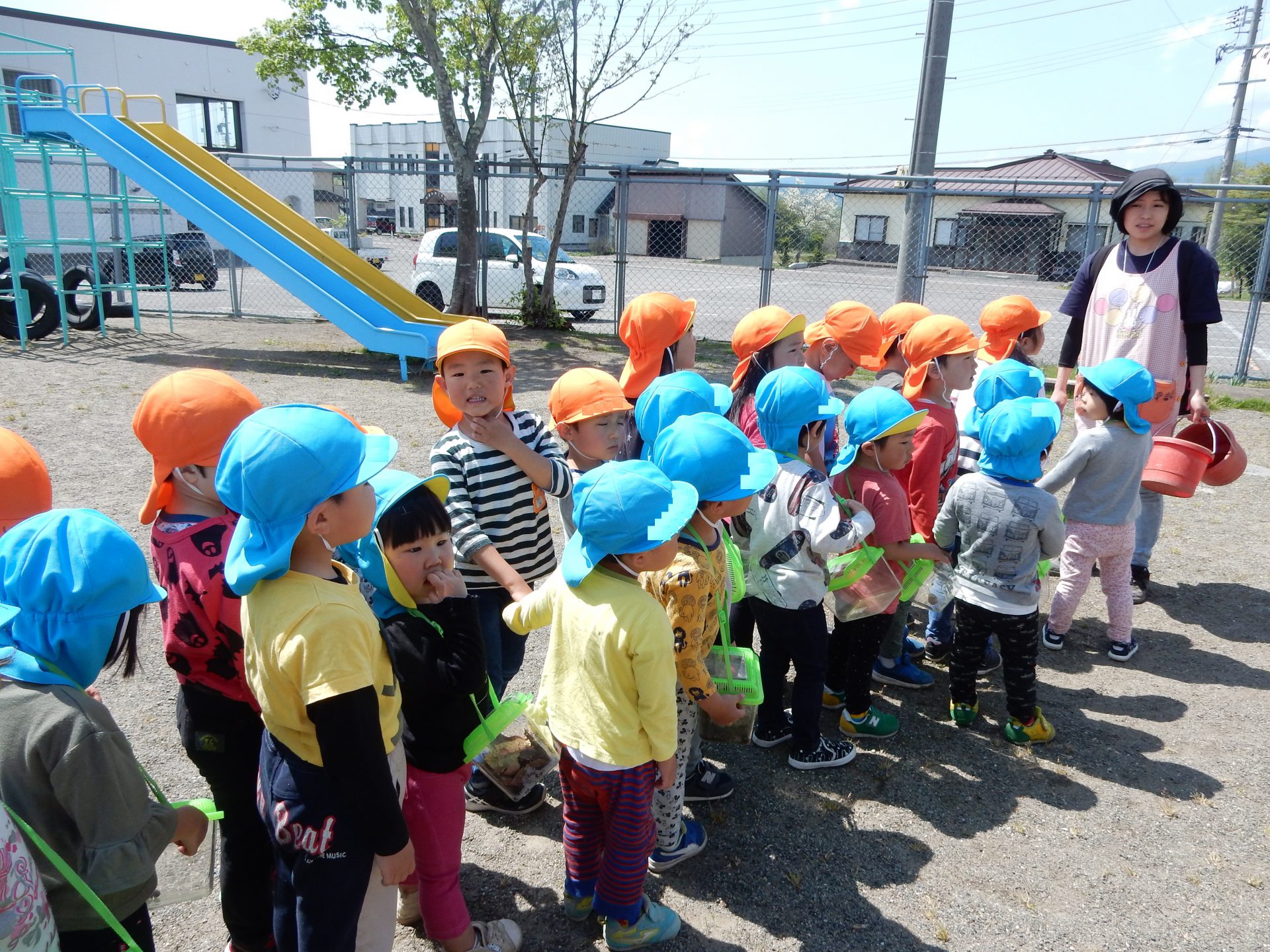 暖かい日が増え、柏原保育園からよく見える黒姫山の山頂の雪もほとんど解けてきました。子ども達も散歩に行くたびに山を見て、「黒姫山が緑色になってきたね。」と季節が移り変わってきたことを感じています。