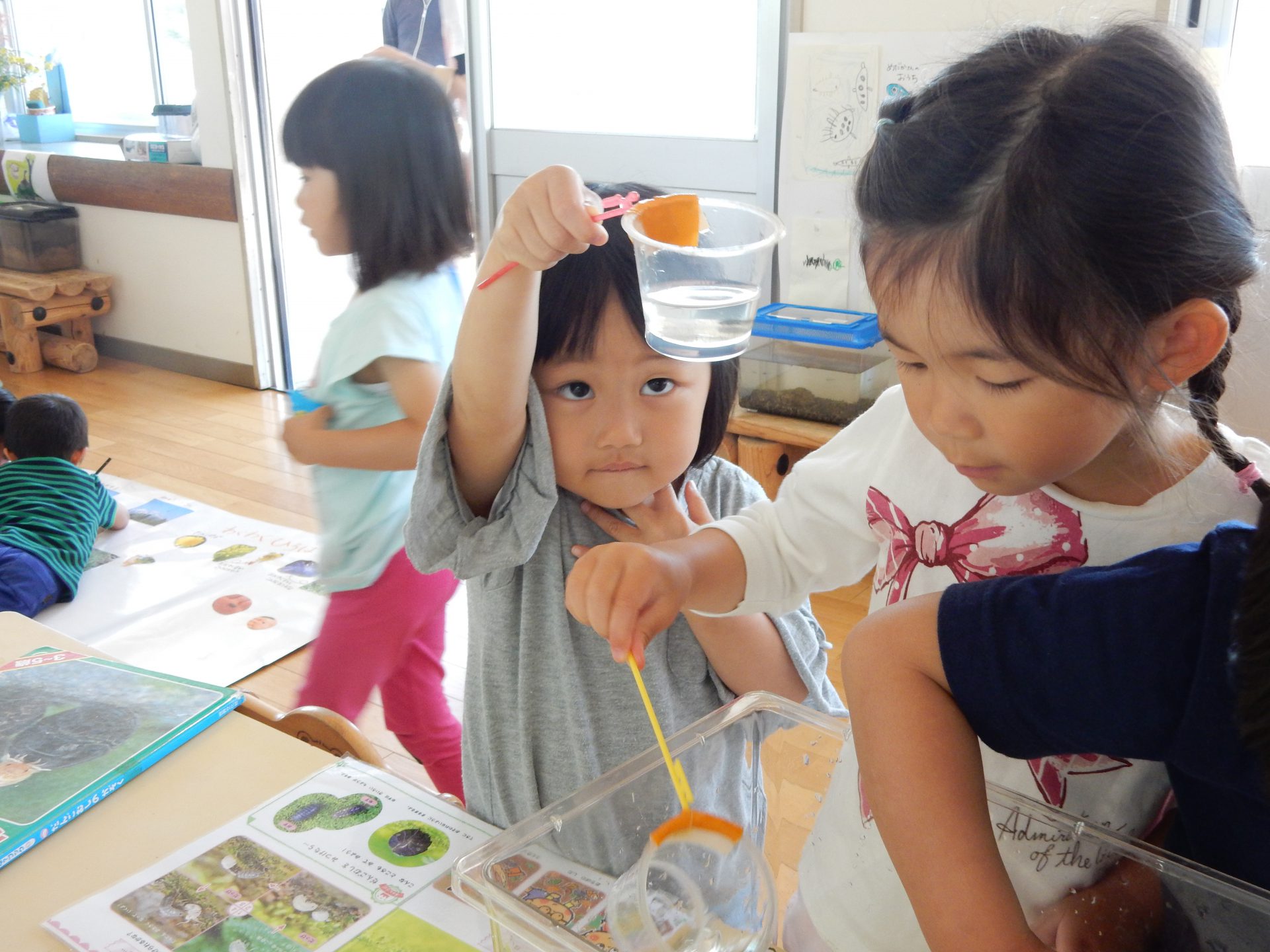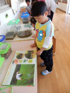 これから無事カエルになるでしょうか。子ども達の興味はまだまだ続いています。