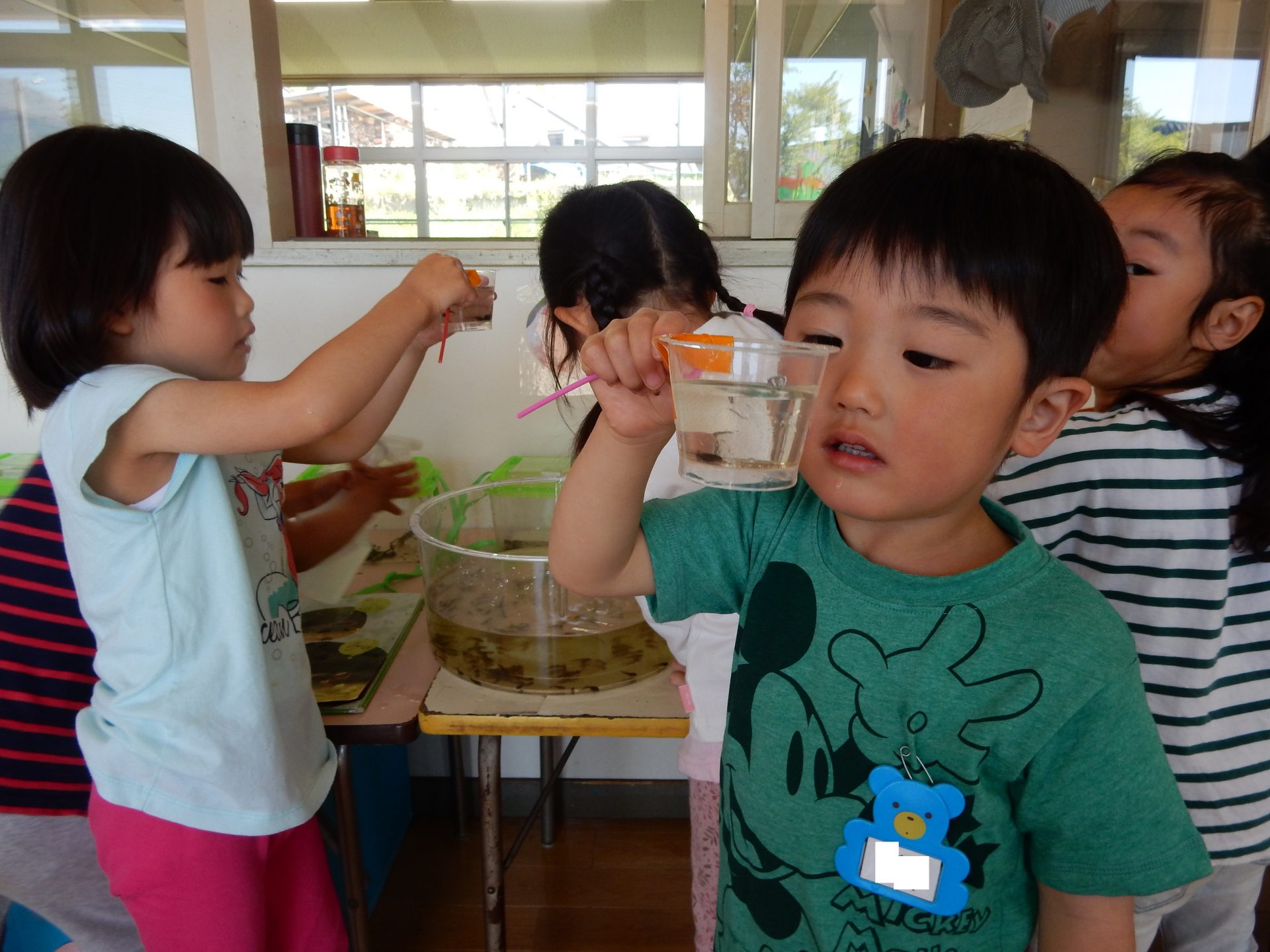 そこで「おたまじゃくしさんが苦しいって言ってるよ。なんでだと思う??」と子ども達に問いかけてみました。