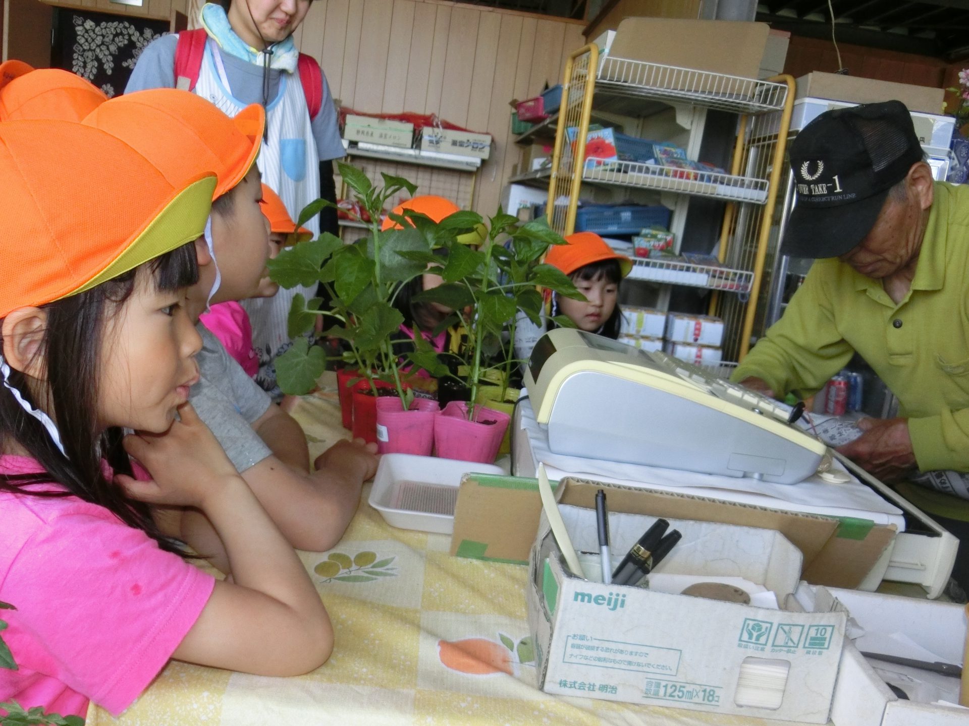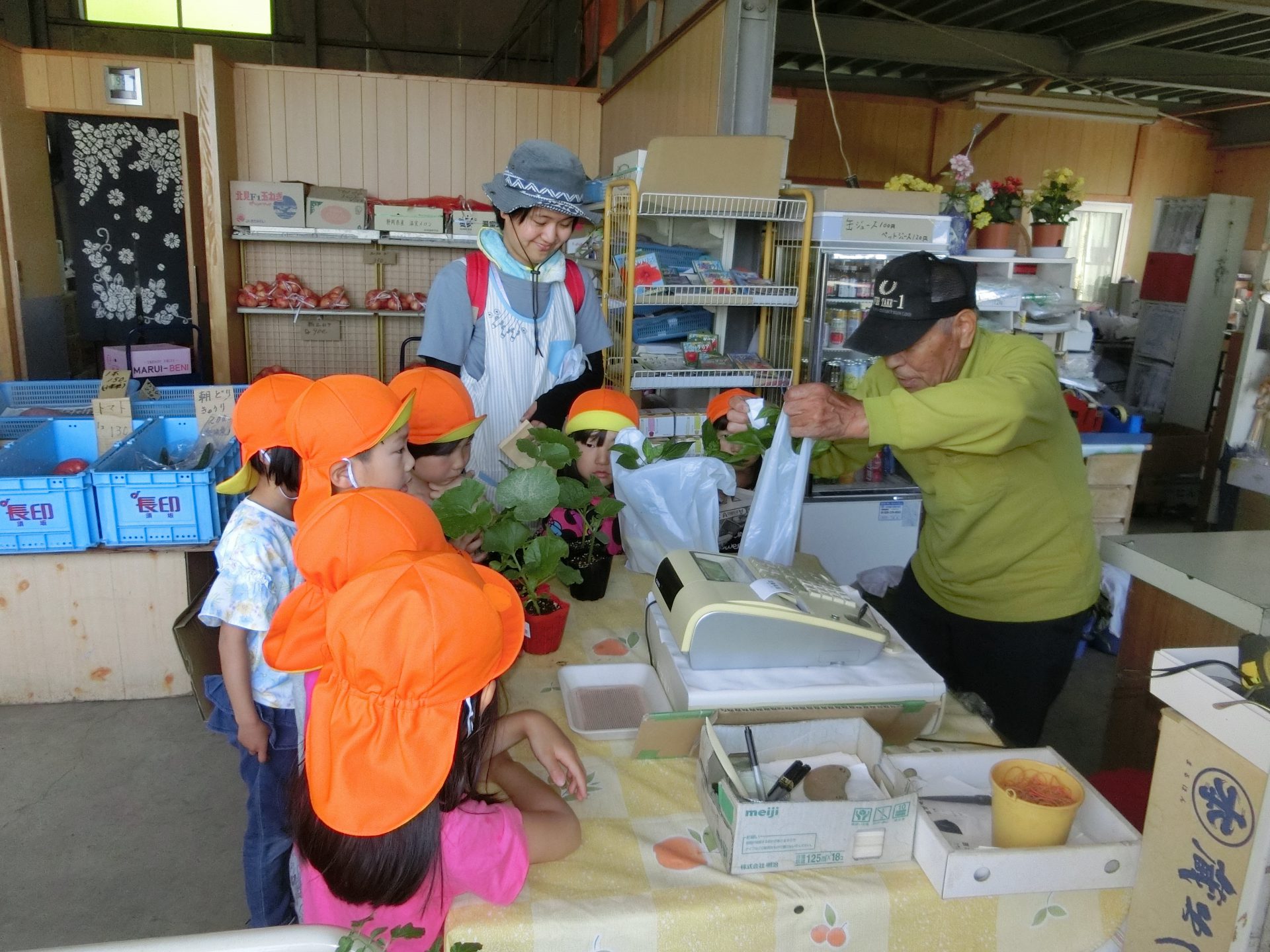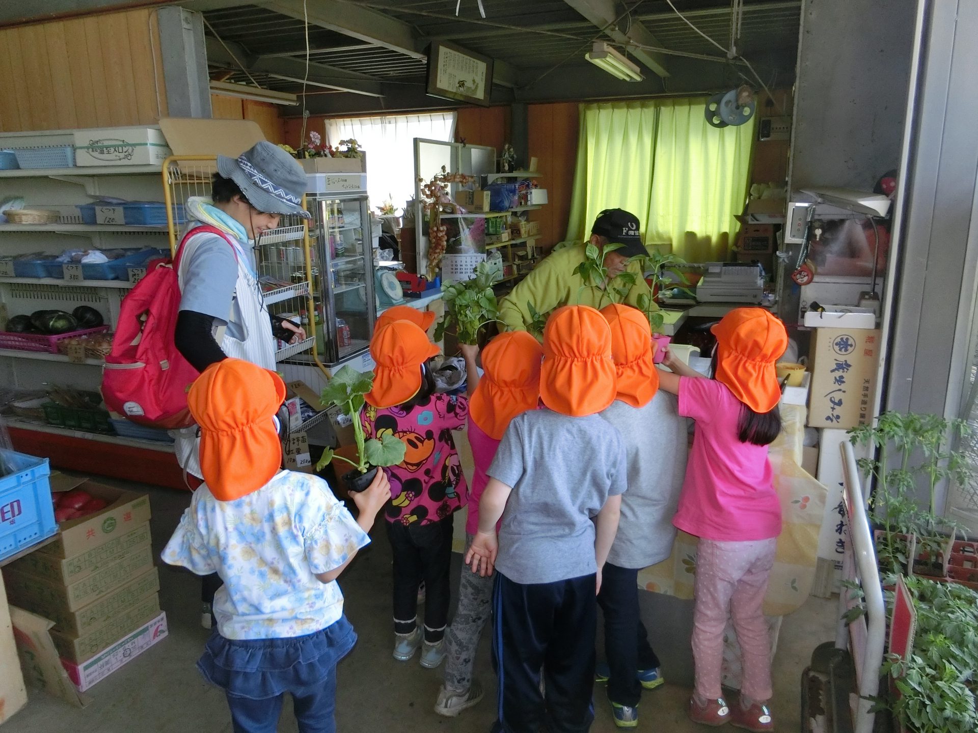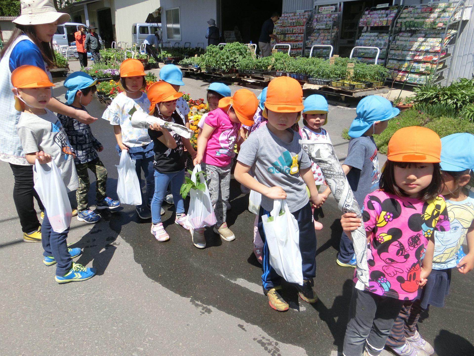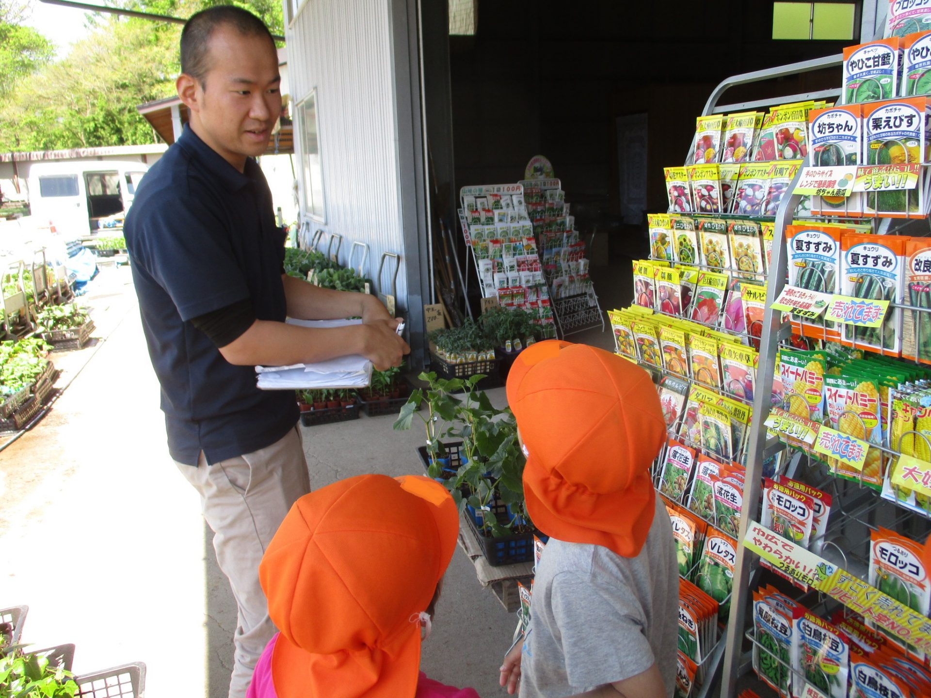 この日は、その畑で育てる野菜の苗や種を買いに年中・年長さんで出かけました。