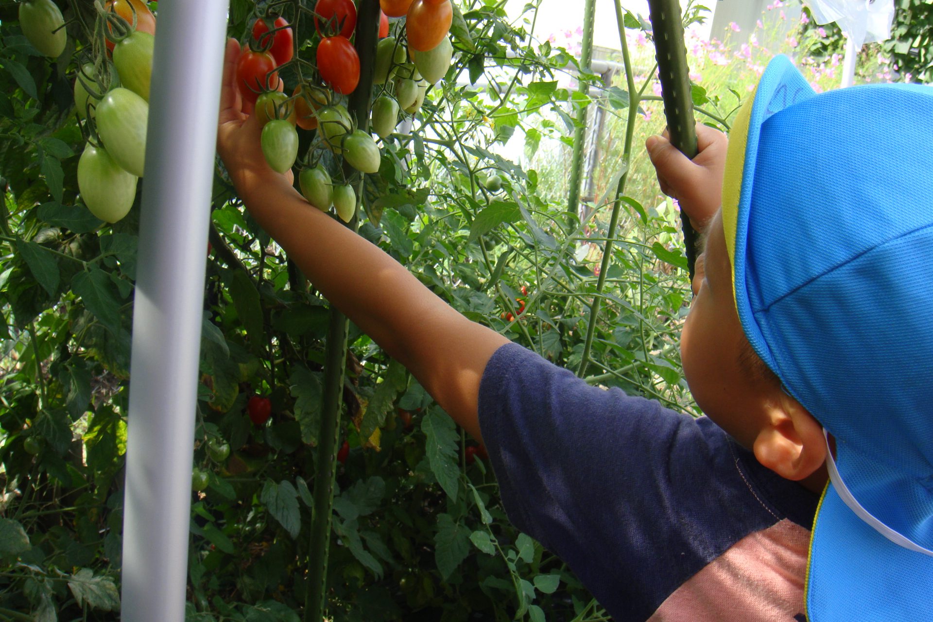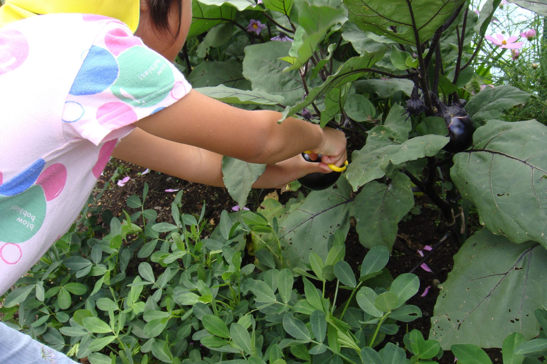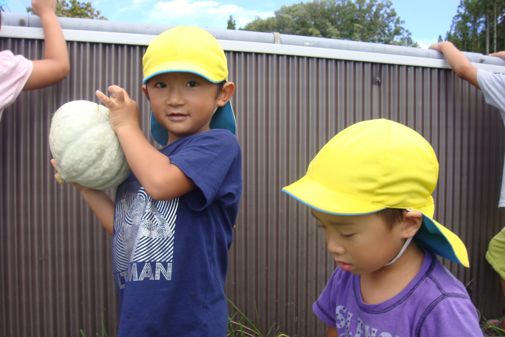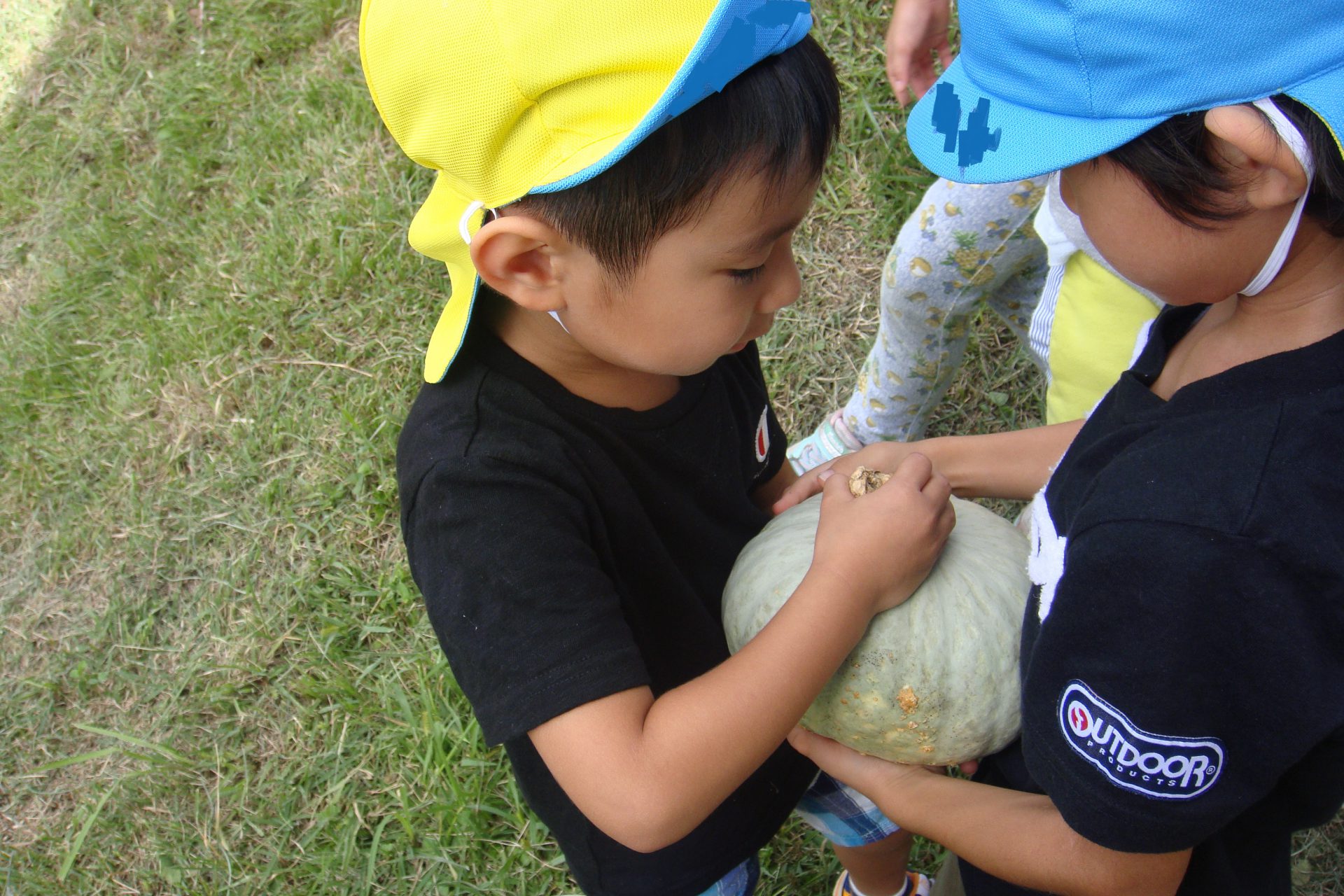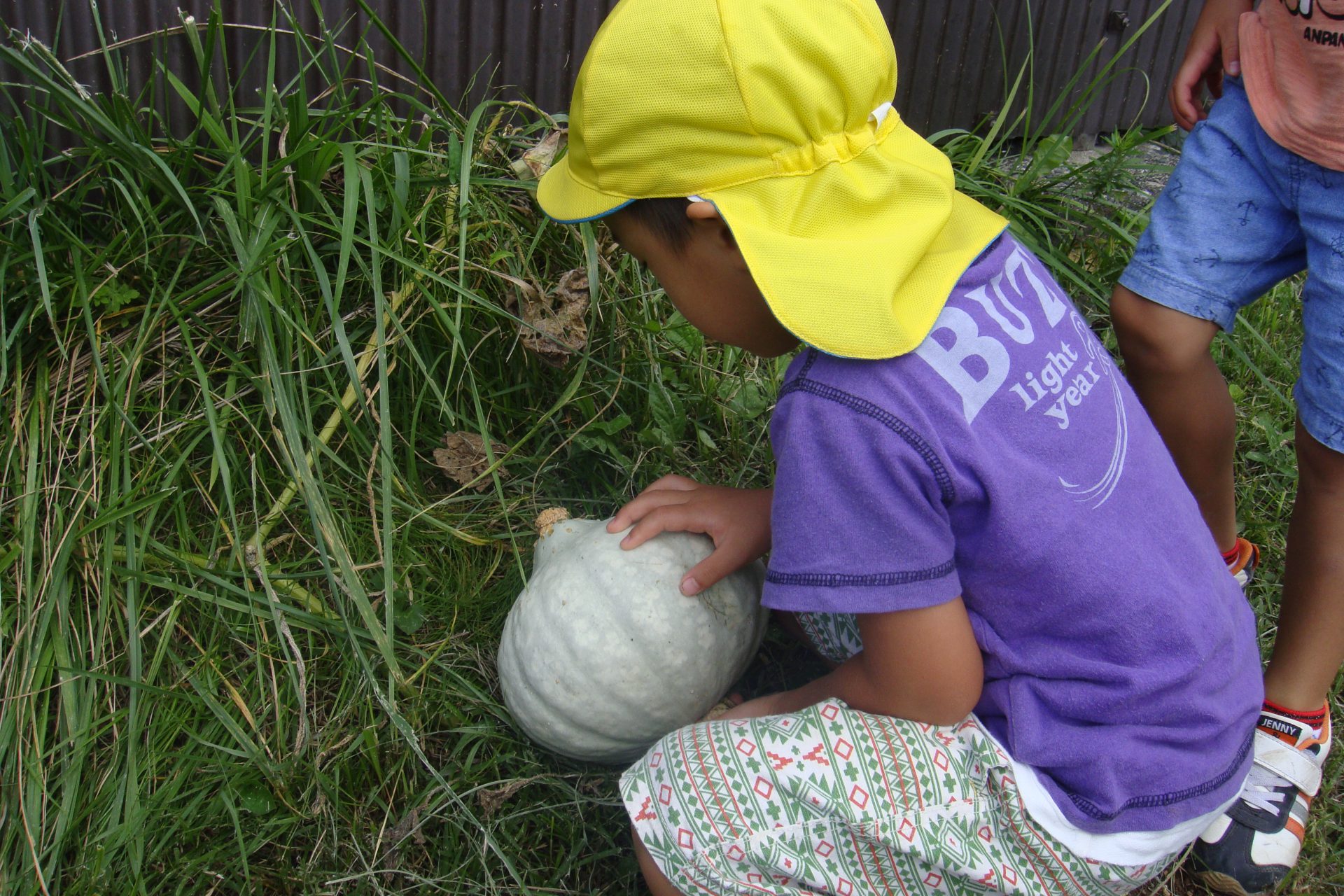 保育園の畑・土手には、ナス・トマト・カボチャがあります。