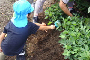 落花生は、花が咲きようやく土の中にもぐり実をつける準備に入った所。