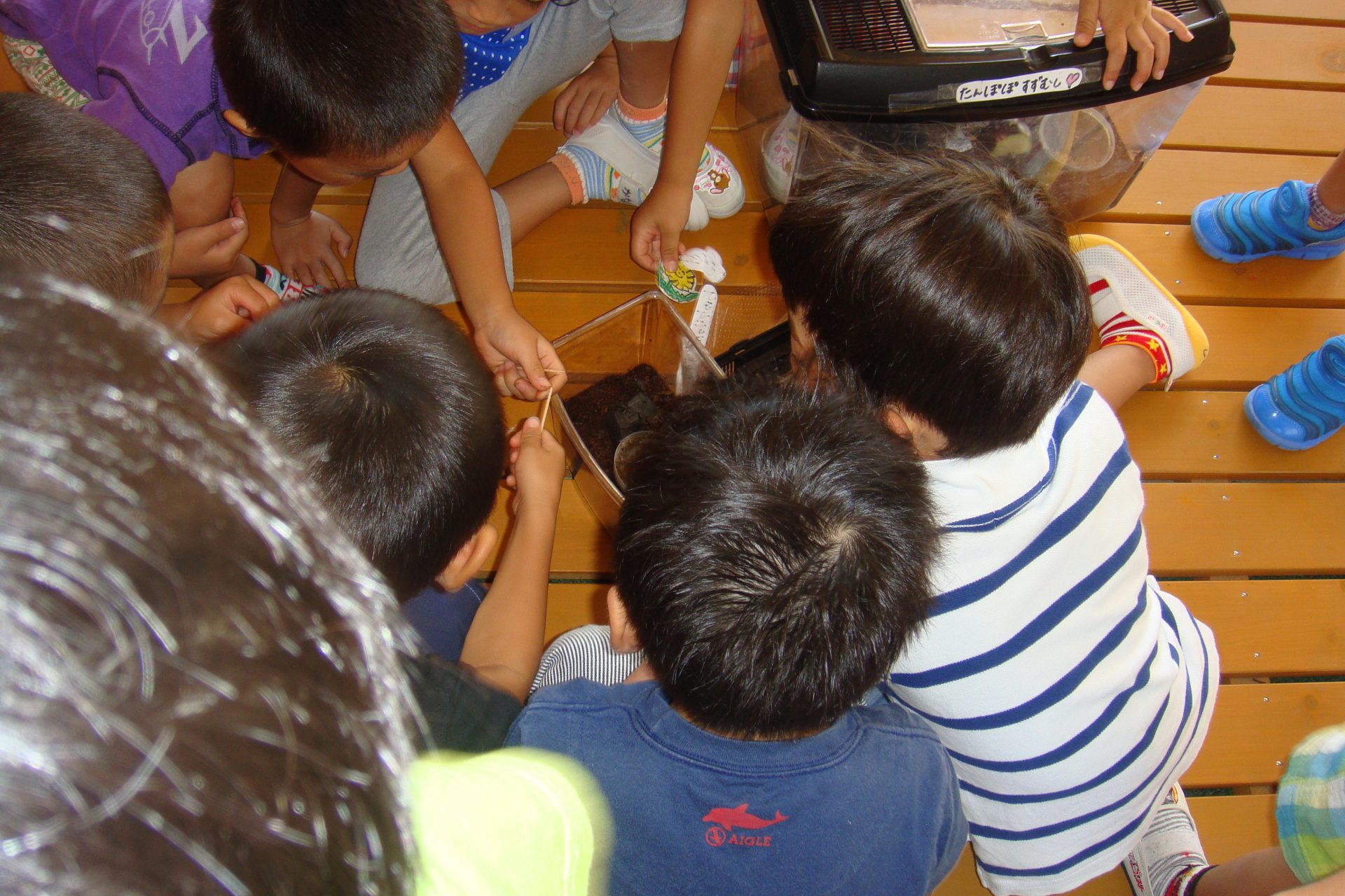 水やりをし、「まだかな~まだかな~」と実をつけるのを楽しみにしていた子ども達。