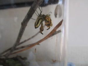 昨年の秋に見つけた青虫が、飼育ケースの中でサナギになり、越冬して春先に羽化したのです!