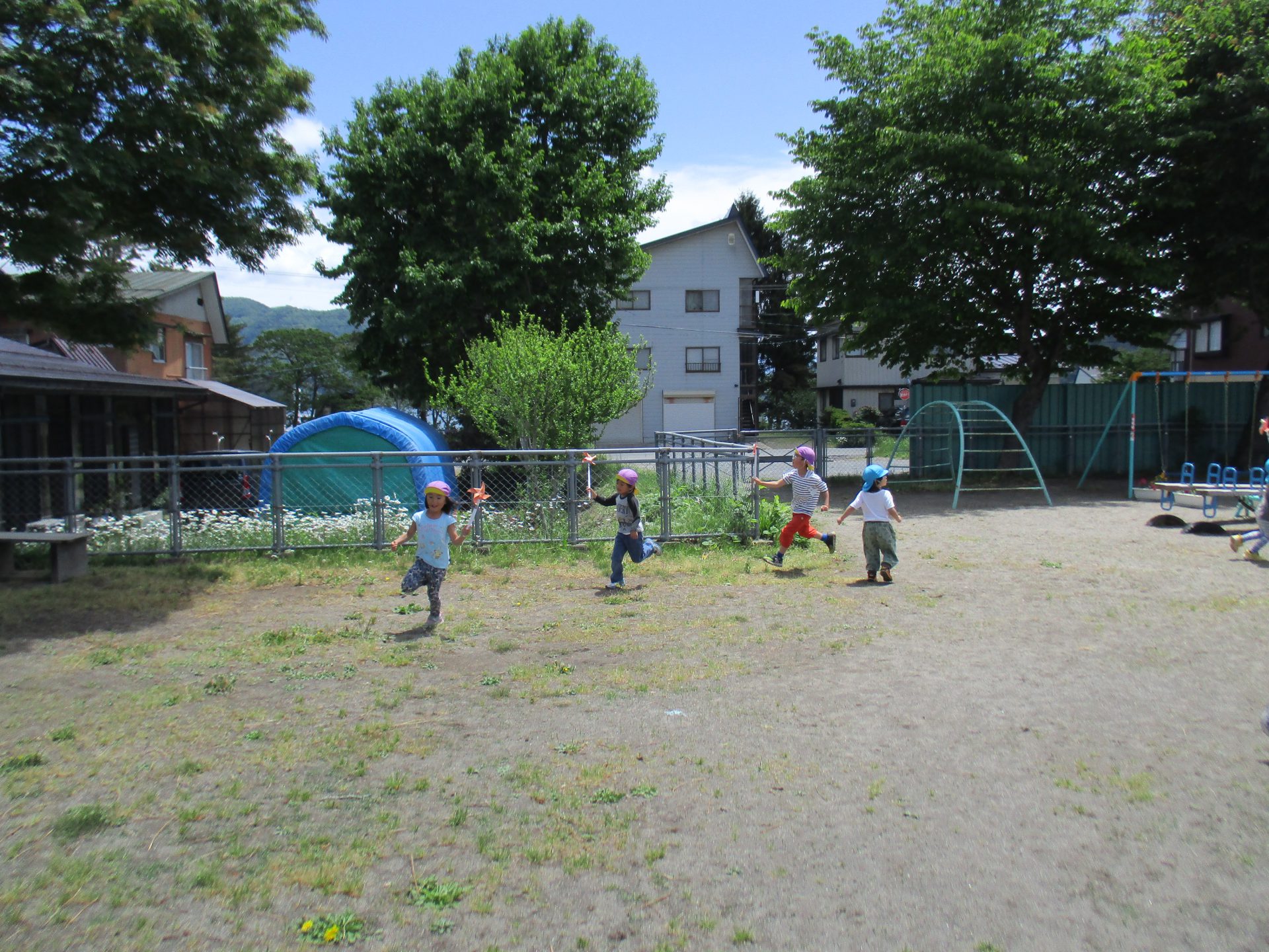 園庭に吹き抜ける風も気持ちが良く、子ども達は体全体で風を感じながら、走っていました!