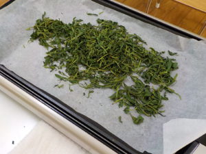 炒る、もむ、を何度も繰り返すうちに、お茶の葉の色が変わってきました。