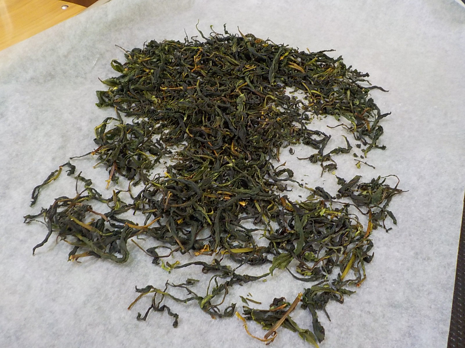 炒る、もむ、を何度も繰り返すうちに、お茶の葉の色が変わってきました。
