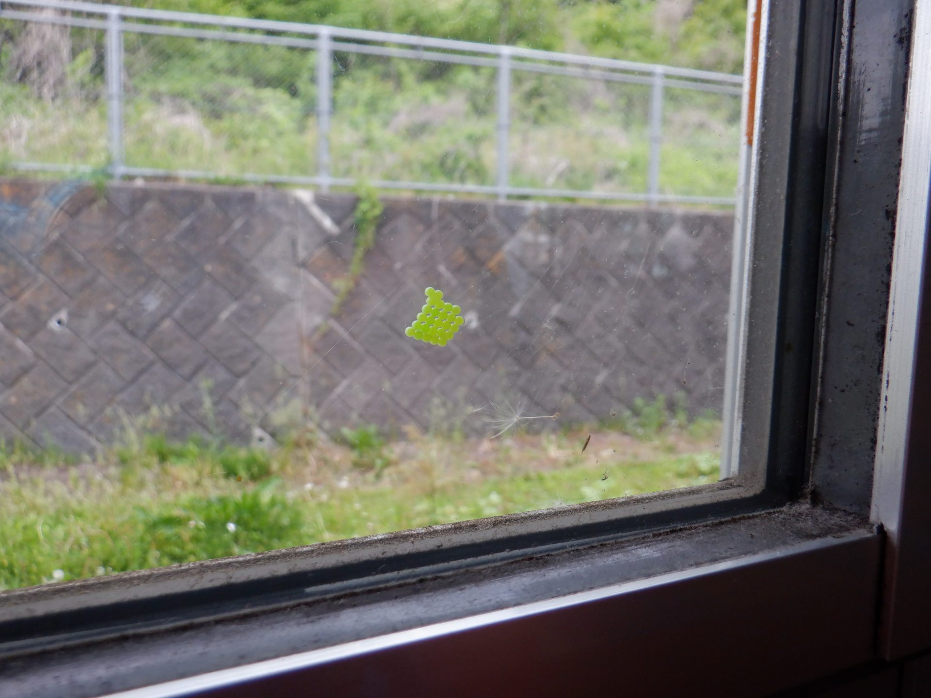お部屋の窓に何やら・・・虫の卵でしょうか?