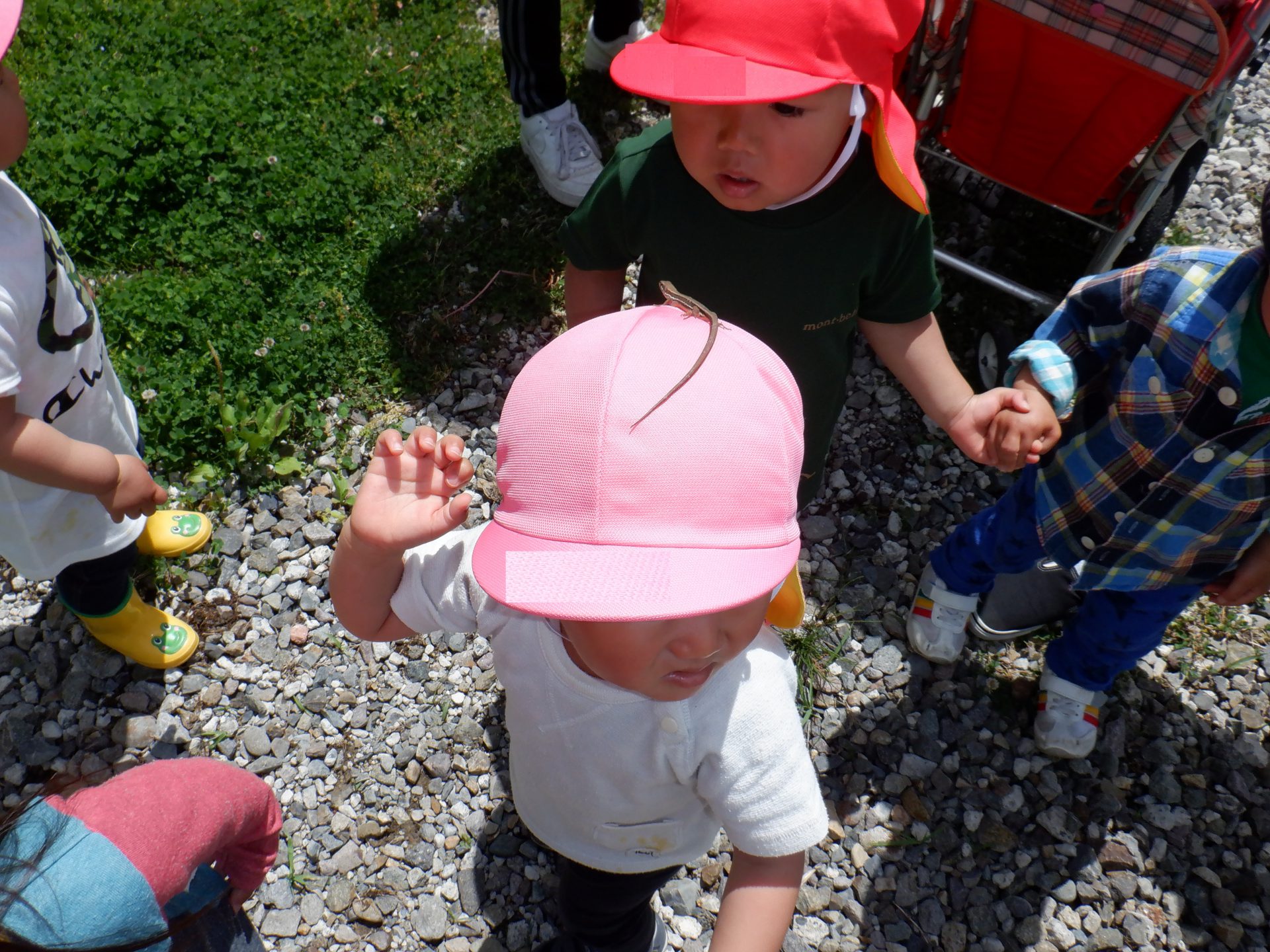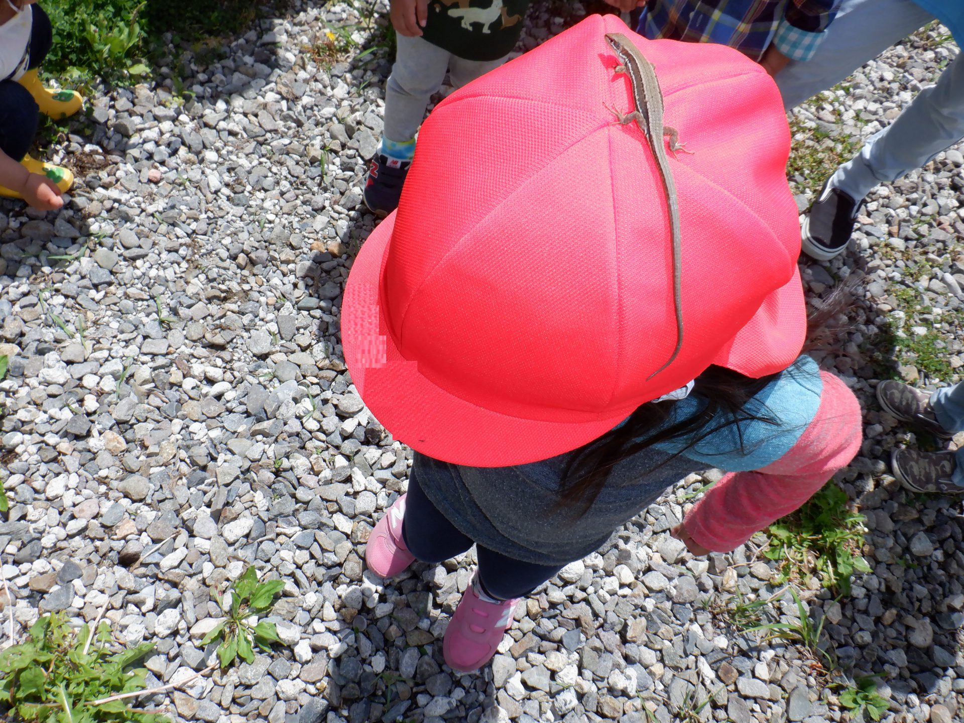 幼児さんが飼育しているのを見たり触ったりして仲良くなったカナヘビ。