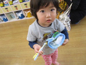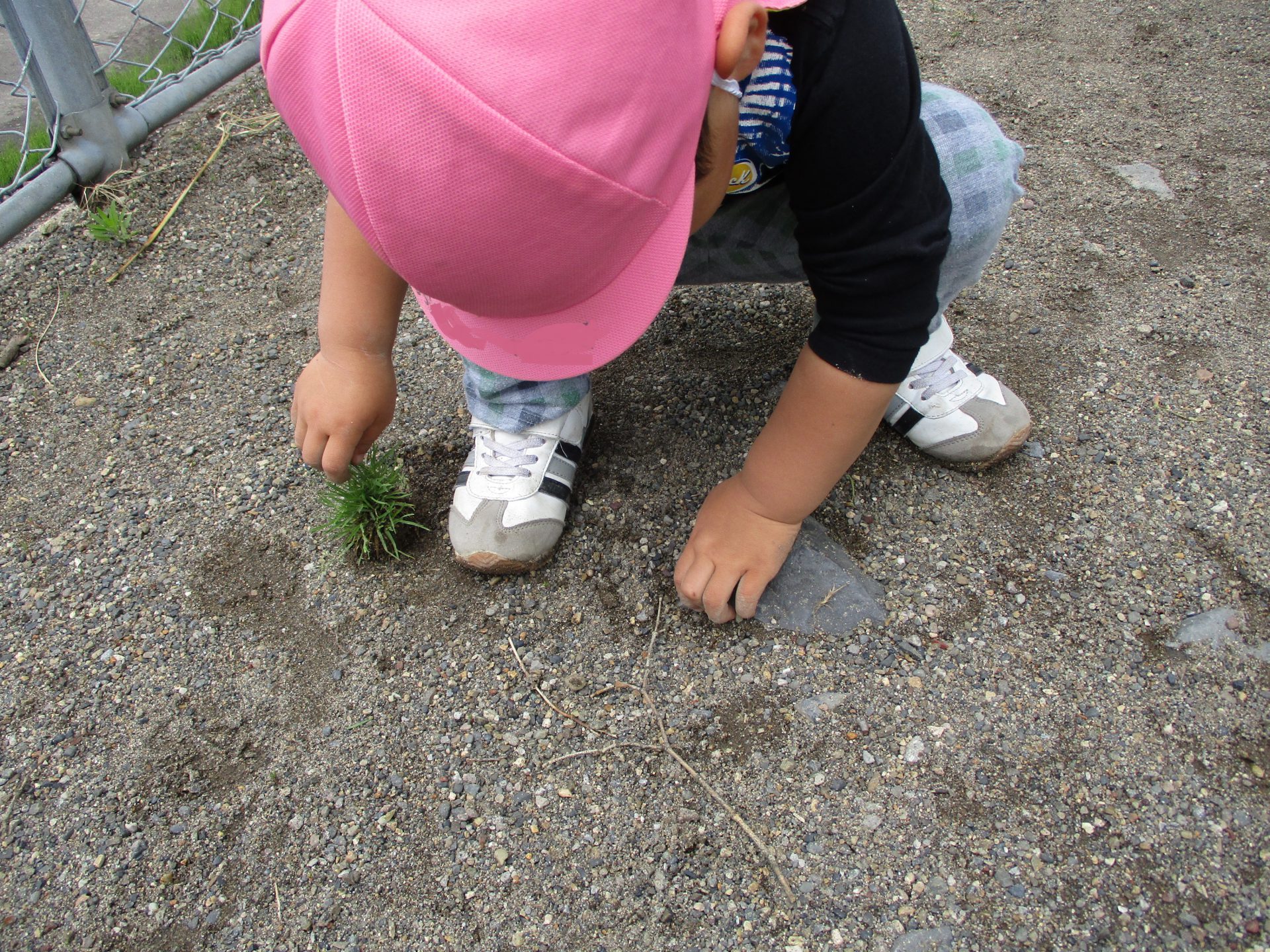 また、泥んこ遊びや水遊びが始まってくる中で、見る、触れるなど、子ども達がどのように楽しみたいのか思いを汲みとり、それぞれの楽しみ方で身近な環境との関わりが楽しめるようにしていきたいです。