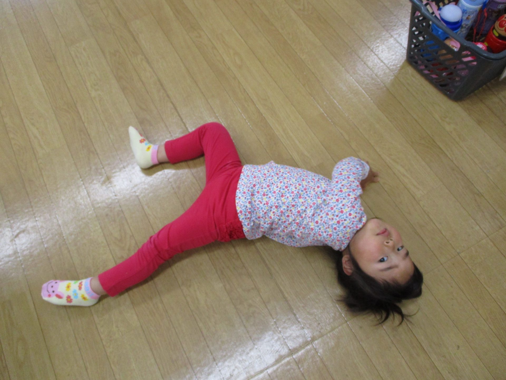 外でたくさん遊んだ後はお部屋に戻ってきて、お昼までの時間を過ごしました。