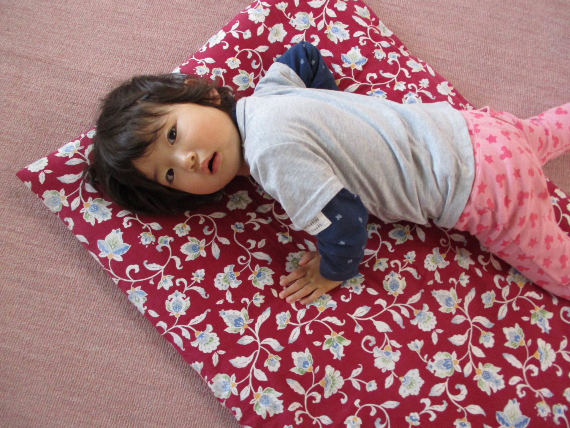座布団の上でごろごろ〜。お友達とごろごろ〜。座布団の感触が気持ち良かったのかな?