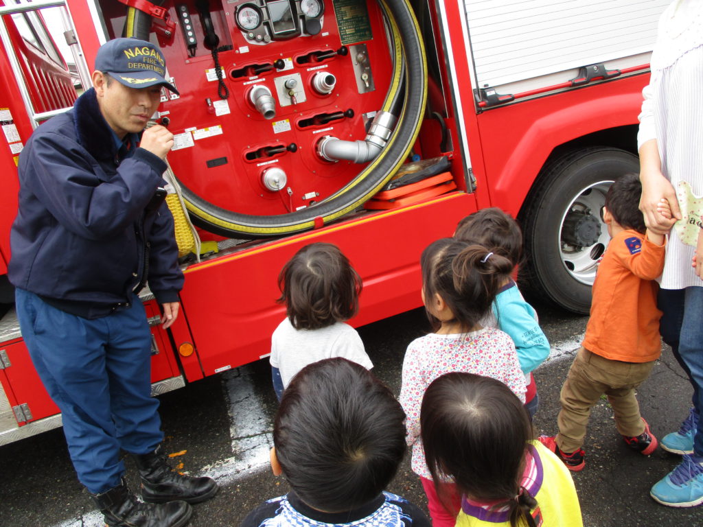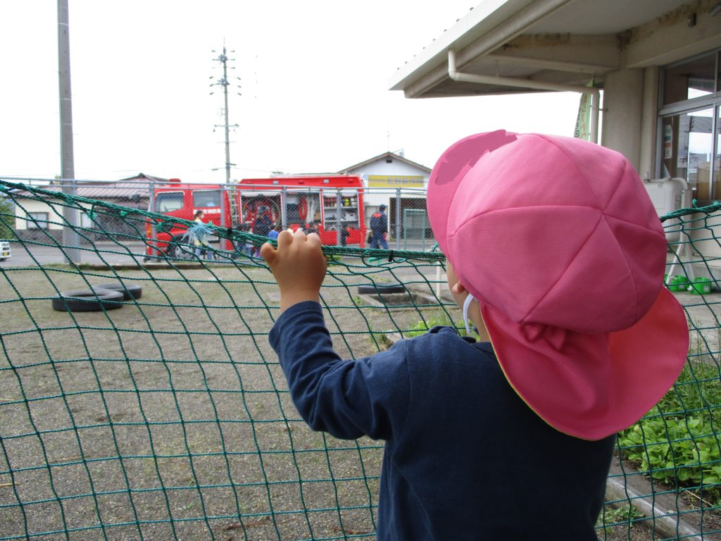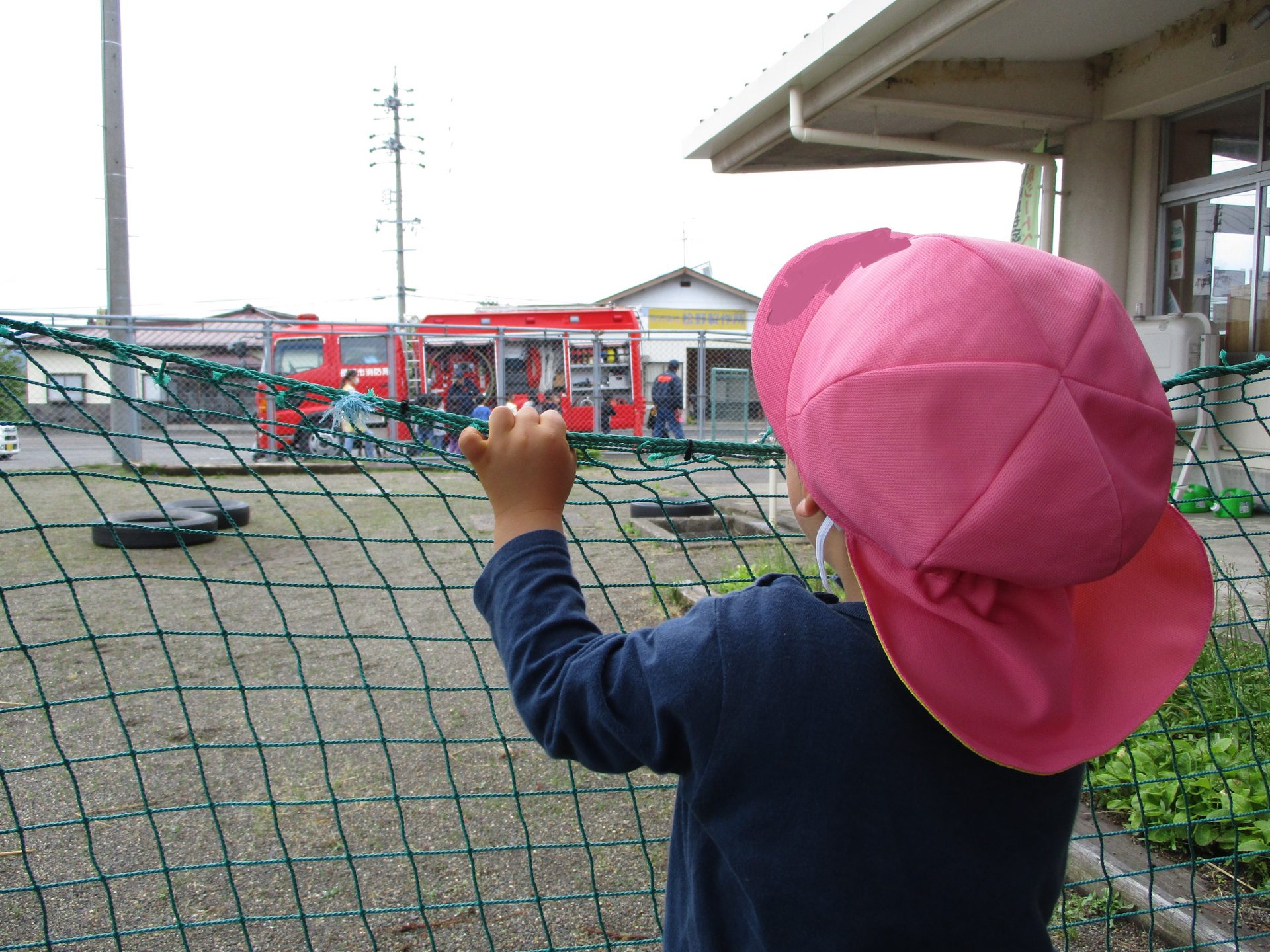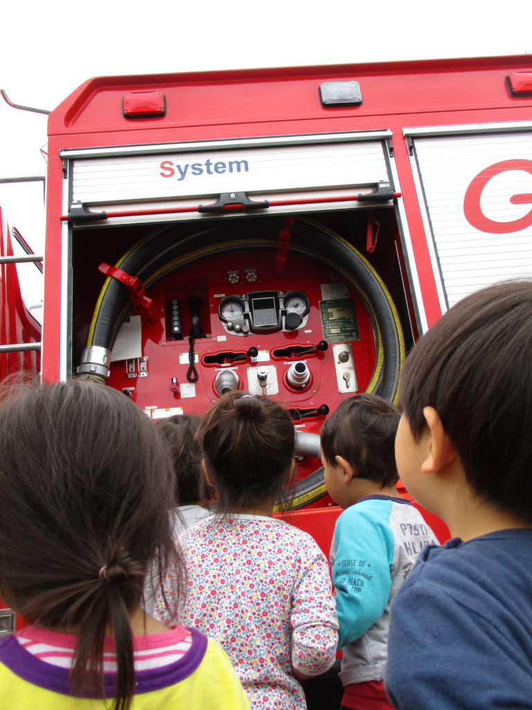 この日は防火教室ということで、駐車場には消防車が停まっていました。