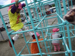 どんどん上に登っていくことを楽しんだり、ジャングルジムの下をぐるぐると歩き「おーい」と探検を楽しんだりしています。