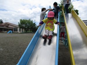 登って降りる時には「みてて!」と嬉しそうに声をかけ、勢いよく滑っていきます。