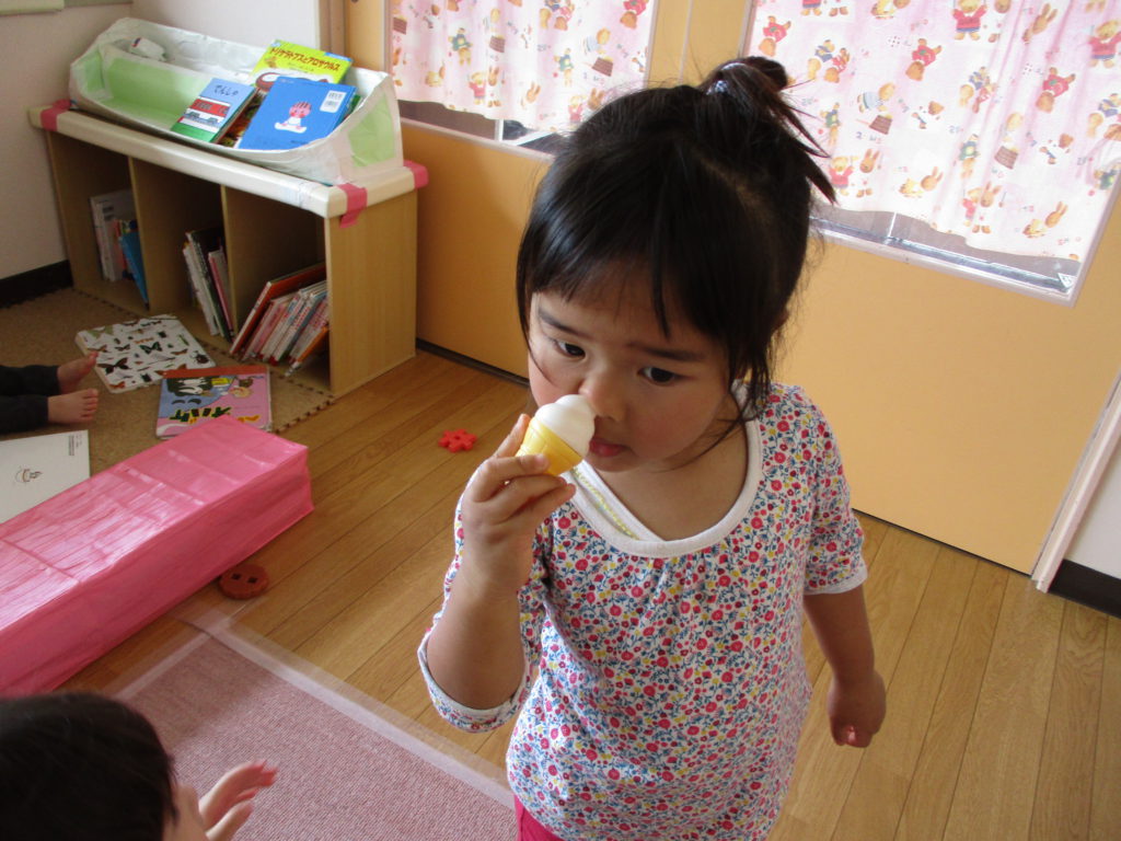 結局、自分の想像した匂いではなかったようで、すぐにアイスクリームを手放していました。(笑)