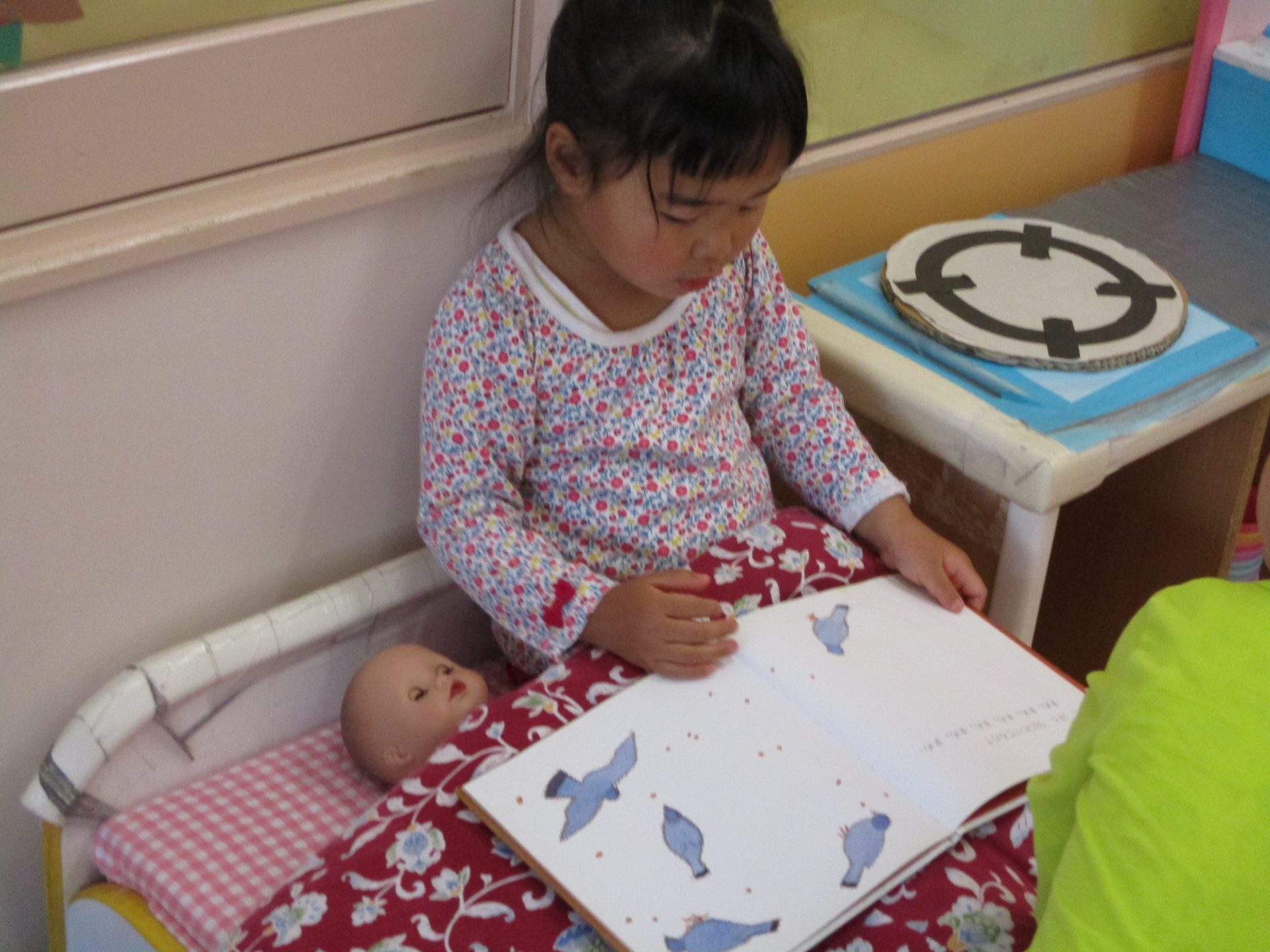 まだ字は読めないので絵を見ながら自分なりに物語を考え読んでくれています。