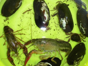 アメリカザリガニ、イシガイ、サワガニ、いろいろな発見です。