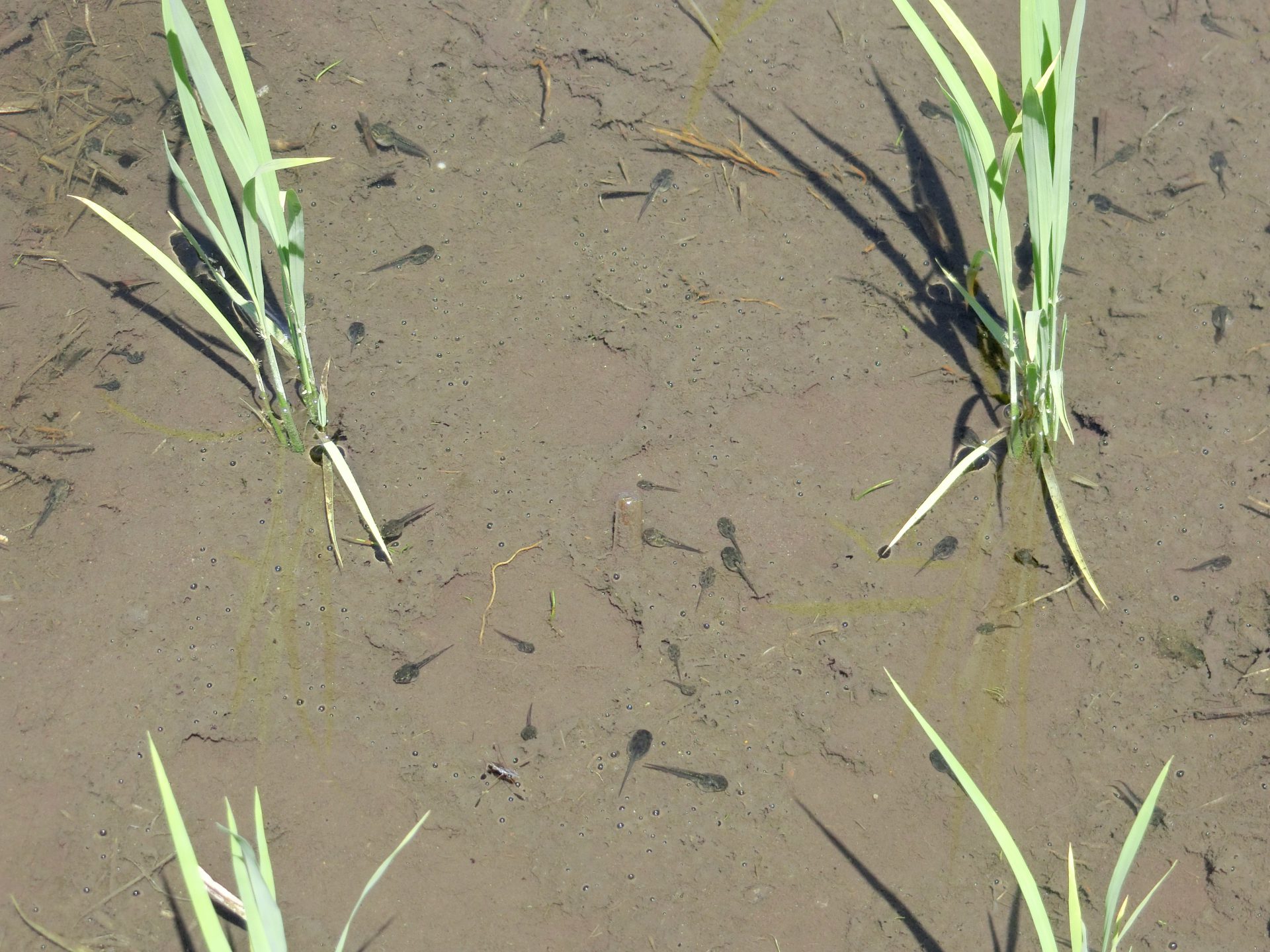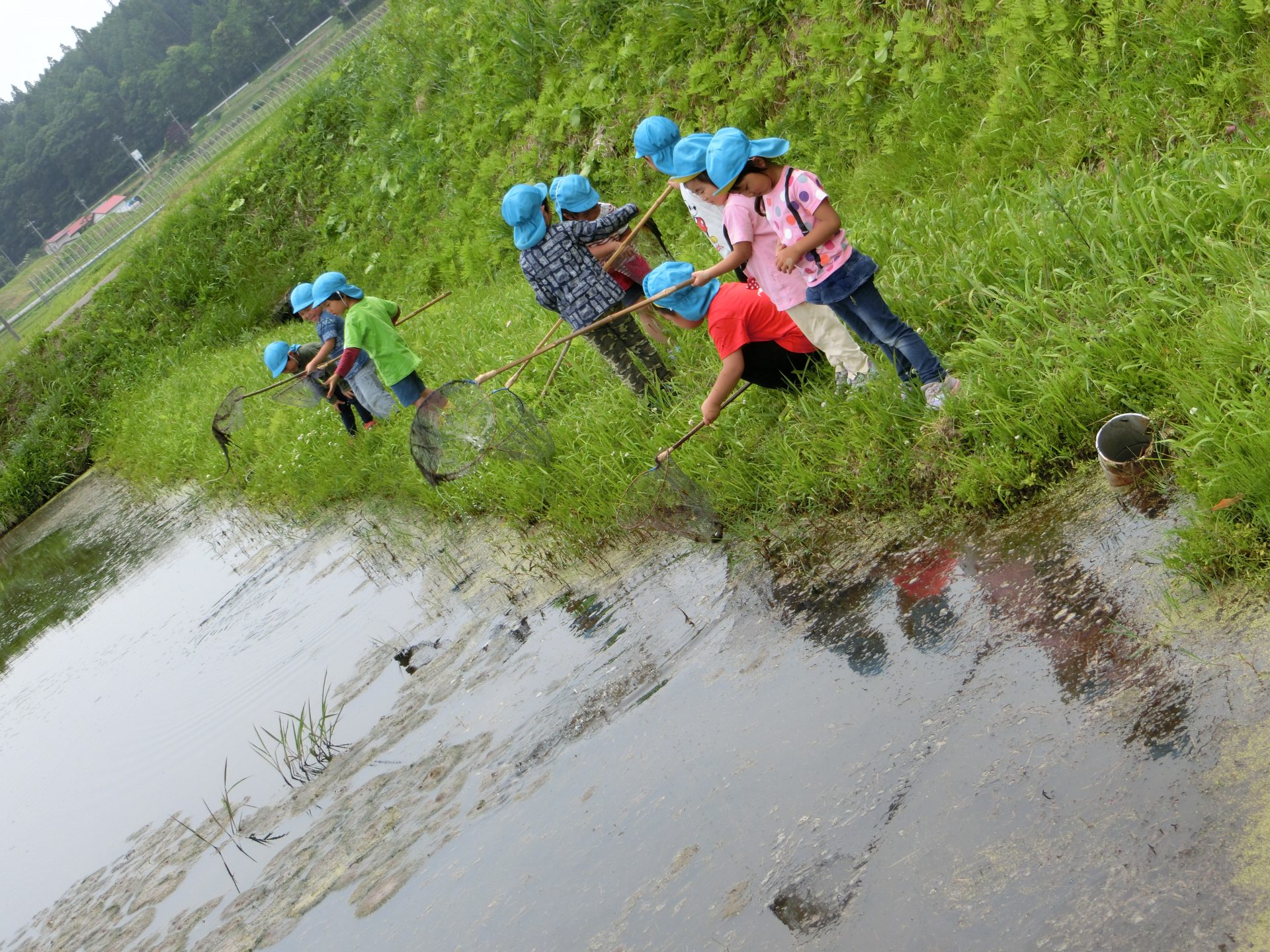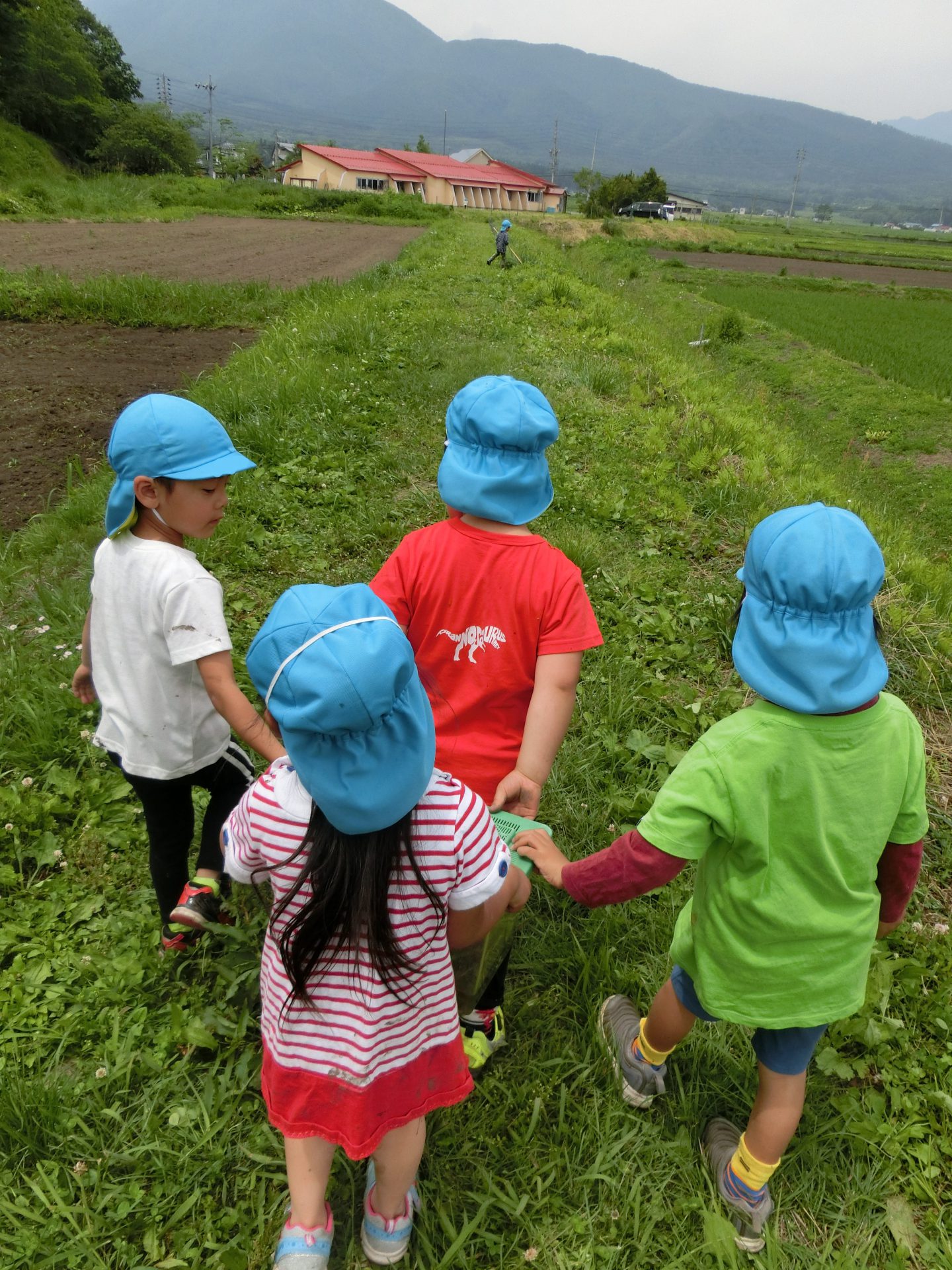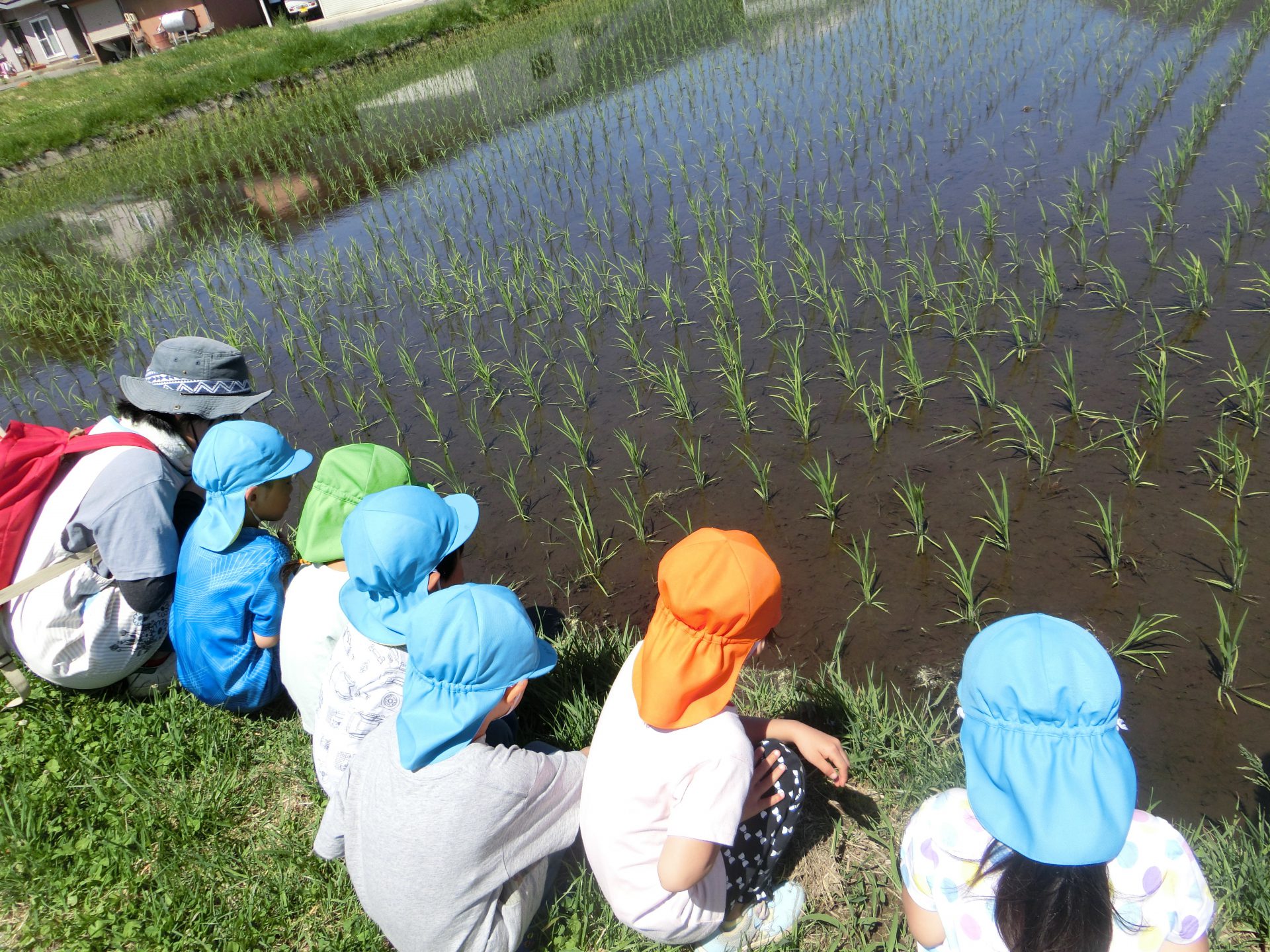 5月、散歩に出かけると、田んぼにオタマジャクシを発見!「いいなー!ほしいね。」でもかなり園から離れた田んぼで道具もなかったので眺めるだけでした。