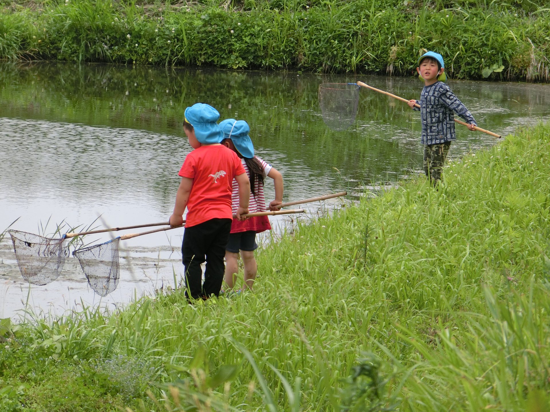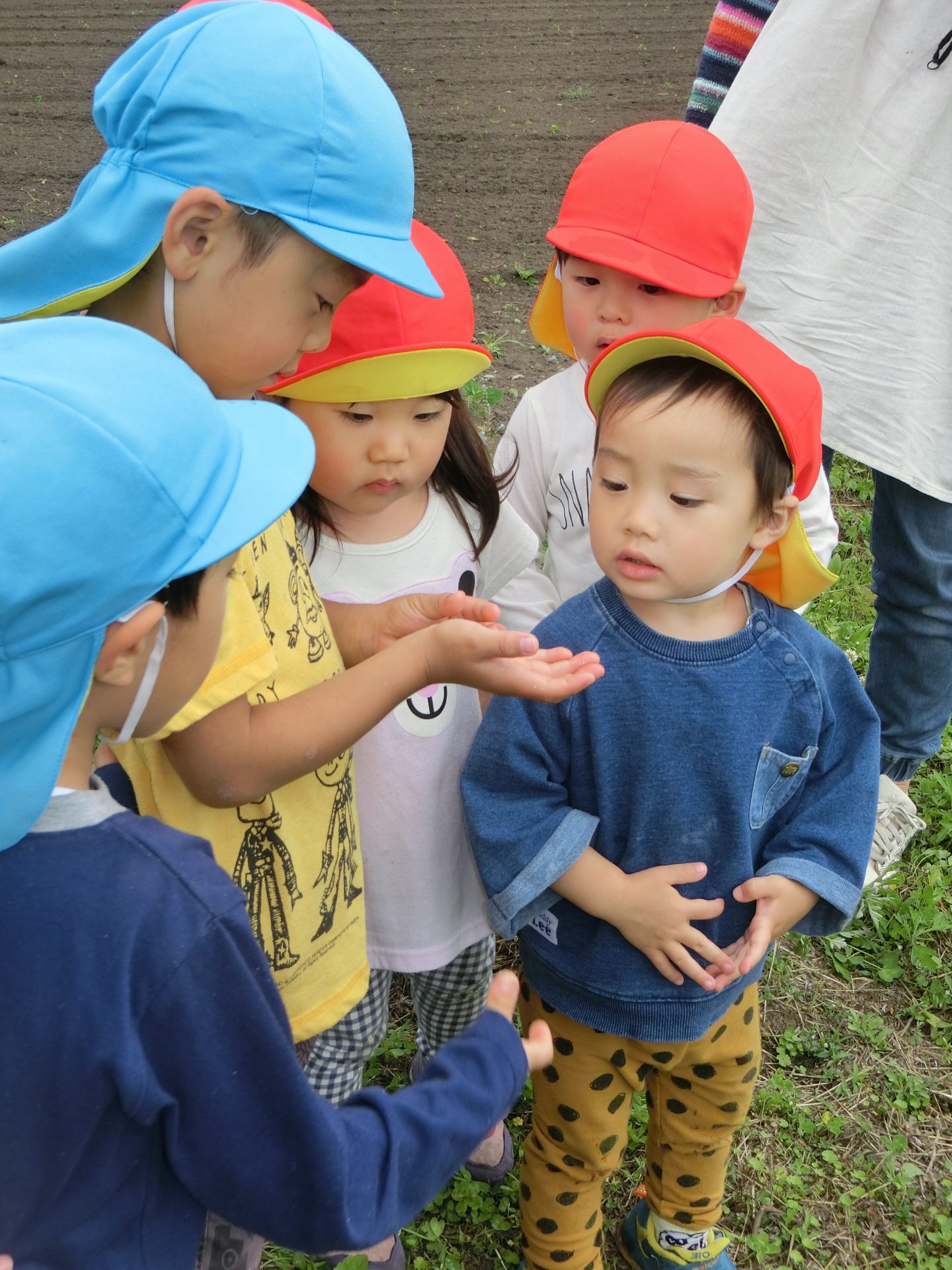 この時季たくさんの虫が出てきて子ども達は夢中になります。身近にいる生き物だからこそ、大切にしてほしい、親しみを持ってほしい、好奇心や探求心を育ててほしいと思います。今回の活動でオタマジャクシがカエルになる、その変化ももちろん楽しみましたが、4歳児らしい追求の仕方ができたのではないかと思います。子ども達の発想にこちらもわくわくしました。「なんで?」「どうして?」から「もしかしてこうなるのかも!」という予想を楽しめるような活動にしていきたいと思います。