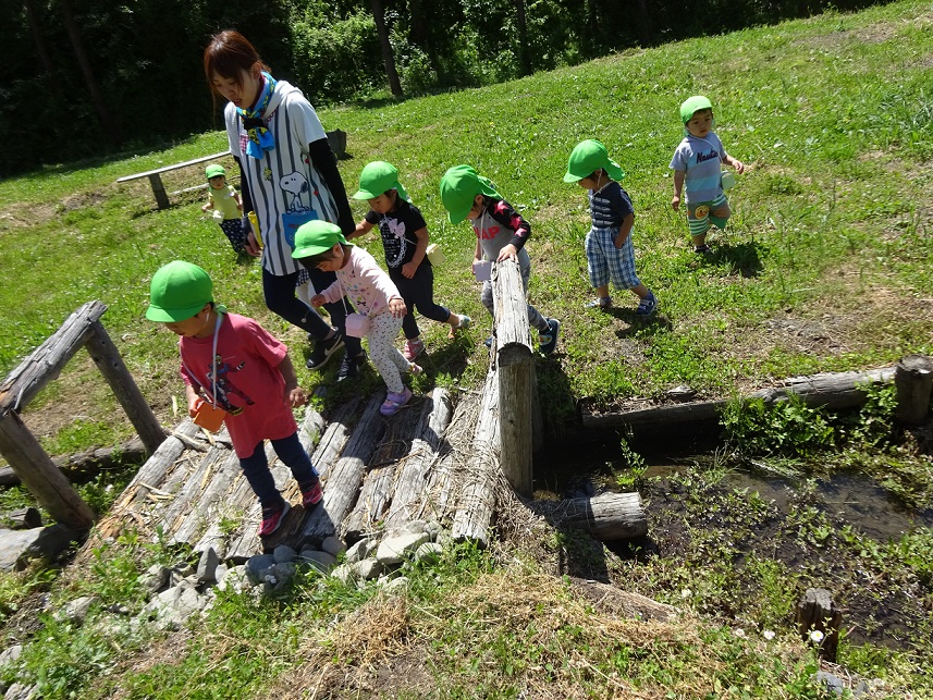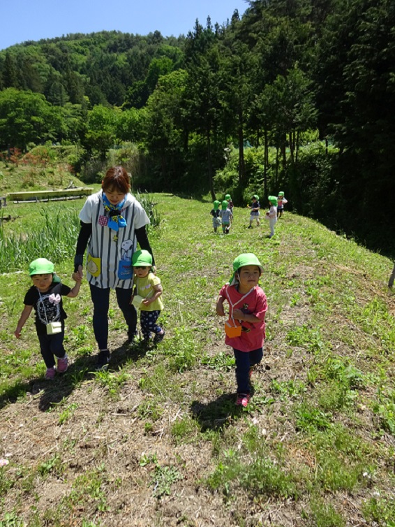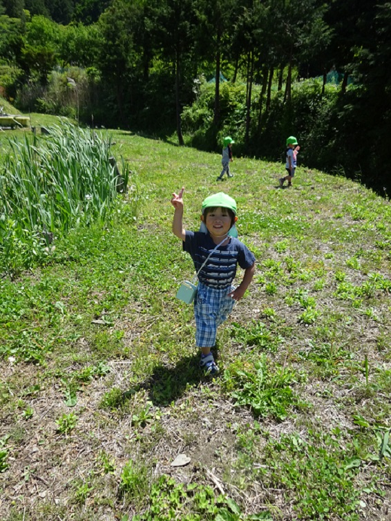 2歳児「こあら組」が遠くまで散歩に行こうと1.2K程離れた知久沢というところに向かいました。この下が「知久沢自然体験の里公園」です。