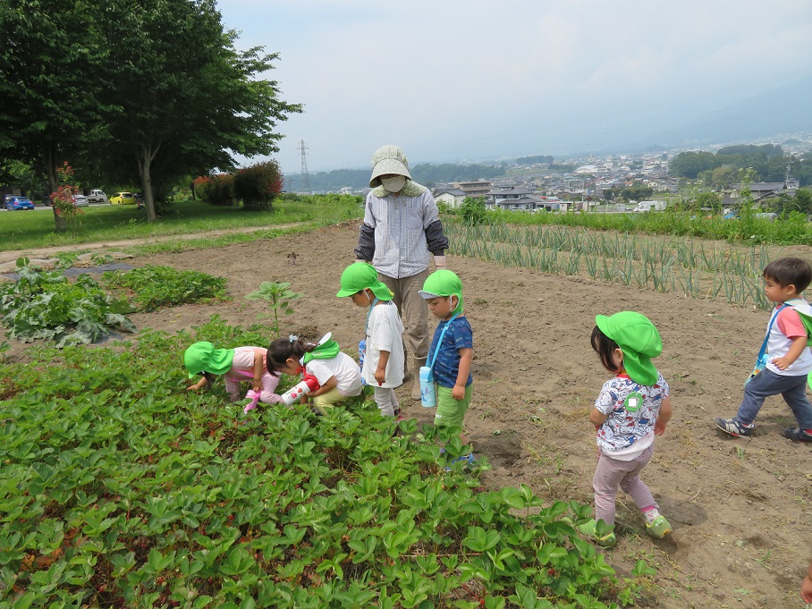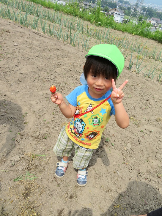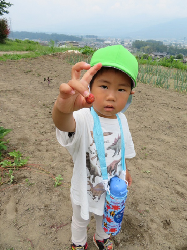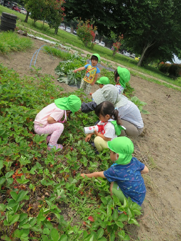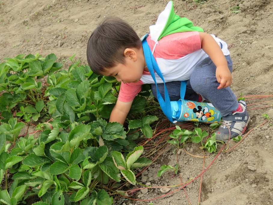 中にはイチゴがなっているのを初めて見た子もいて「いちご(がなってるの)初めて見た!」と気付きました。