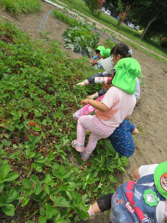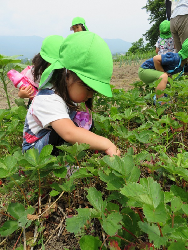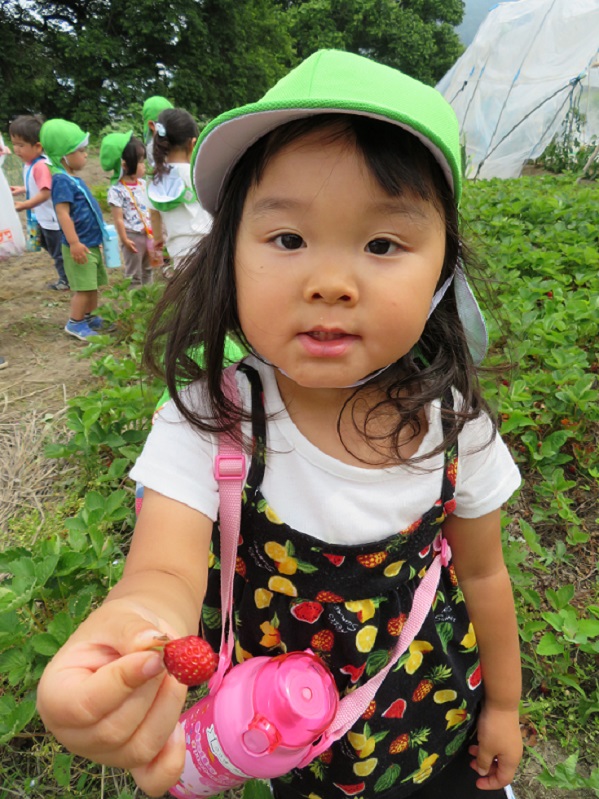 イチゴ摘みが初めての子もいて楽しい経験ができました。摘んだイチゴは保育園に持ち帰って給食に提供させてもらいました。本当にありがとうございました。