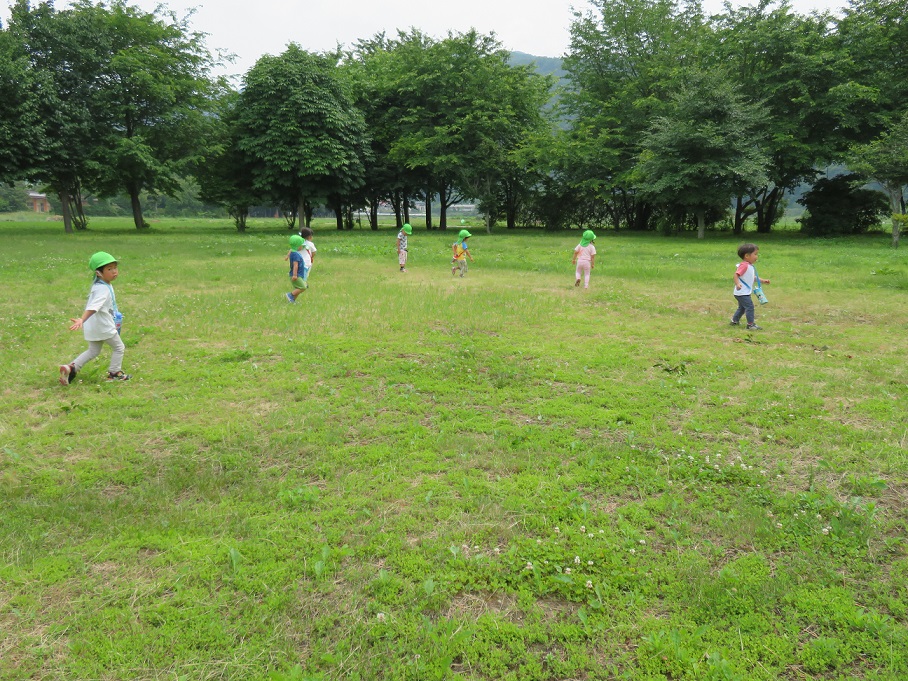 水分補給の後は広場を思い思いに駆け回ったりして楽しみました。