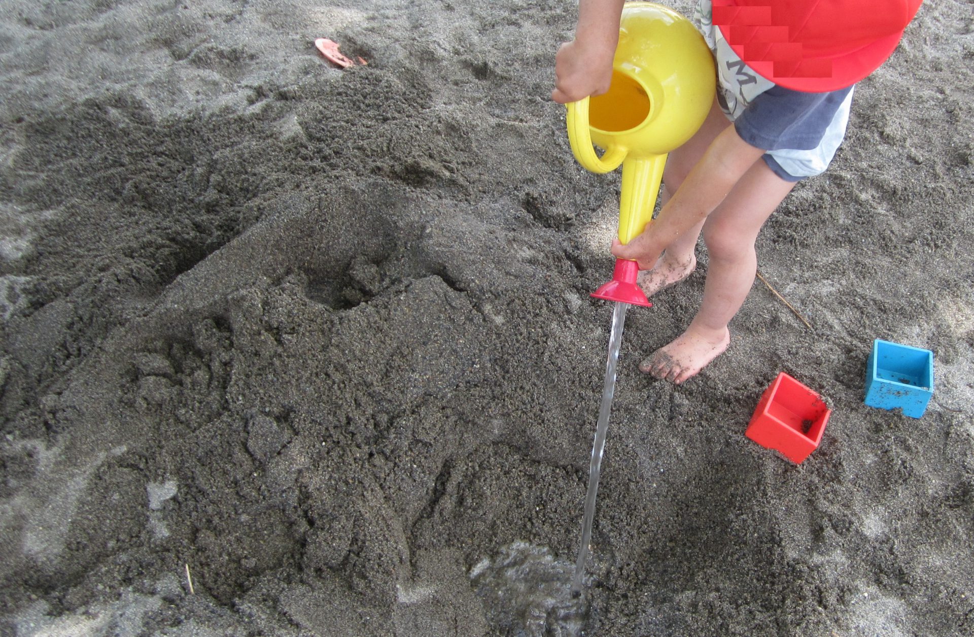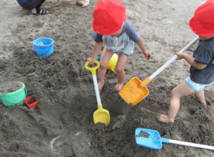 お友だちの中には、初めて裸足で砂の上を歩く子もいて、思わず「いたい!いたい!」と言っていました。