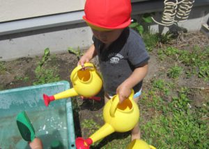 もっとたくさん入れようとジョウロを二つ運んで来る子もいました。