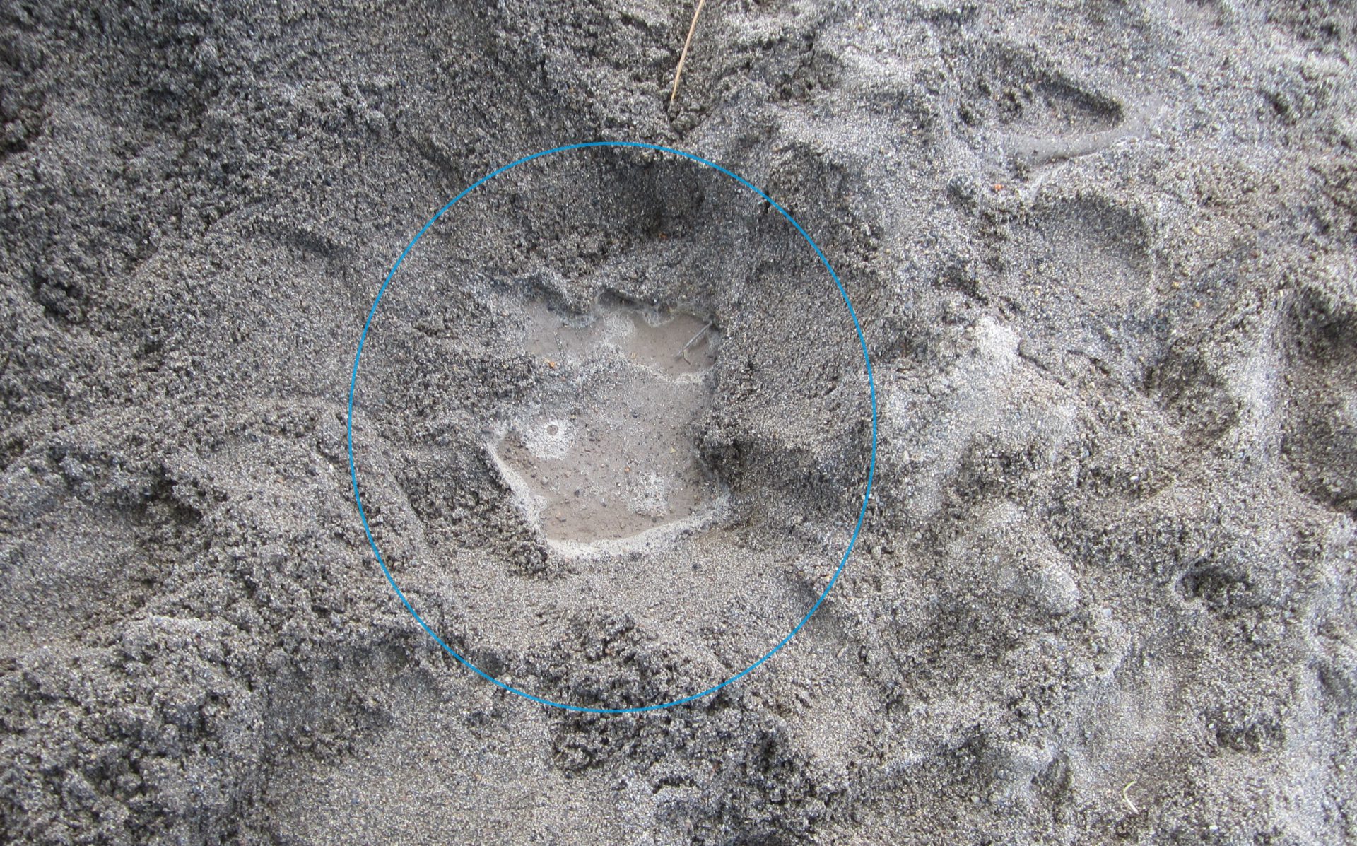 穴を掘った後、コップで水を汲み、穴に入れますがまた水は消えてしまいました。