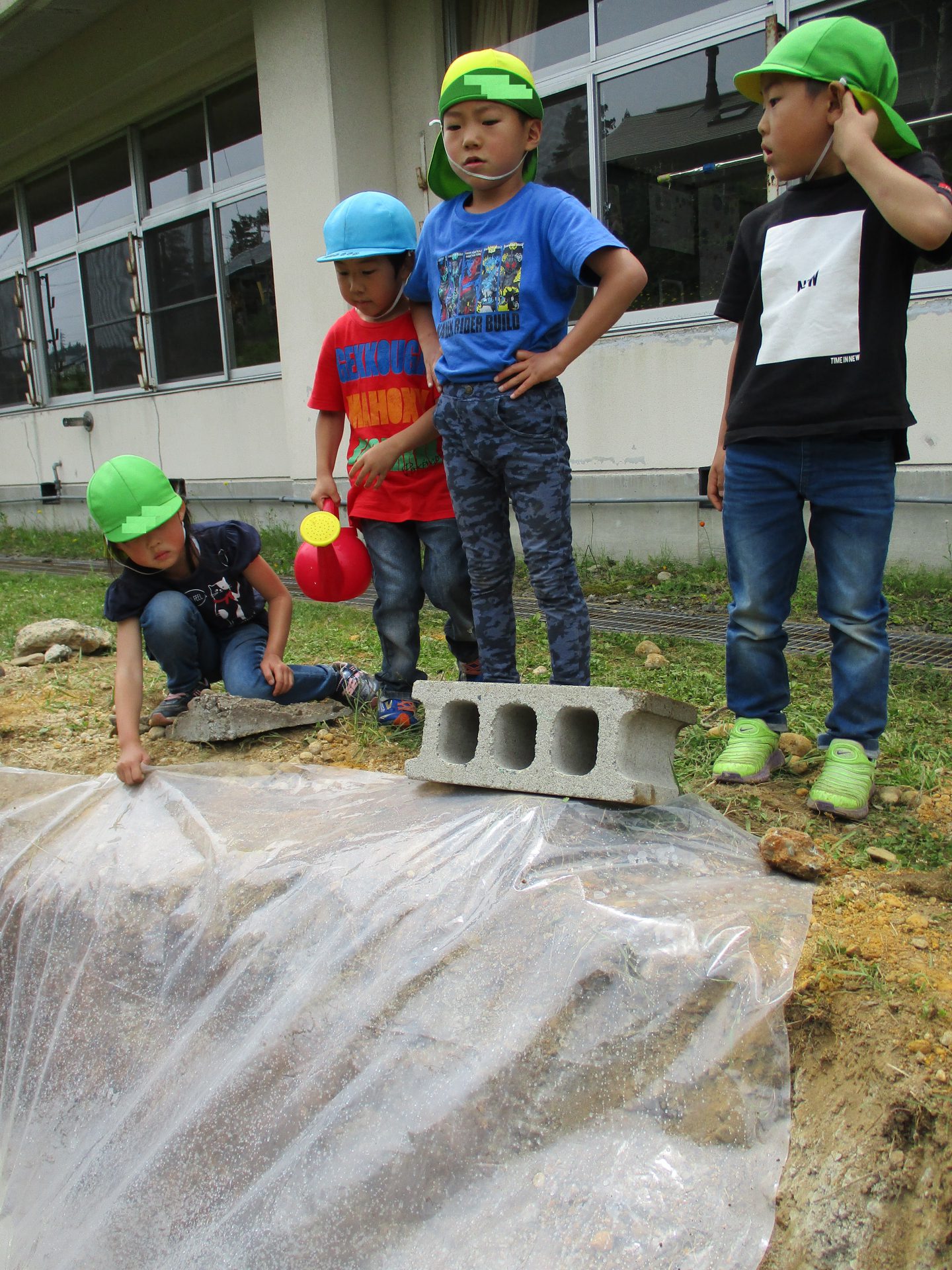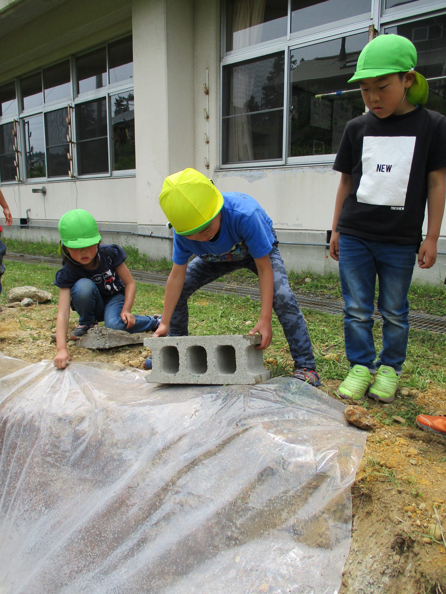 「ビニールを押さえておく石も見つけてきた方がいいよね!」という声が。