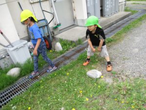 ザリガニちゃんたちを入れるのを楽しみになっている子どもたちです。