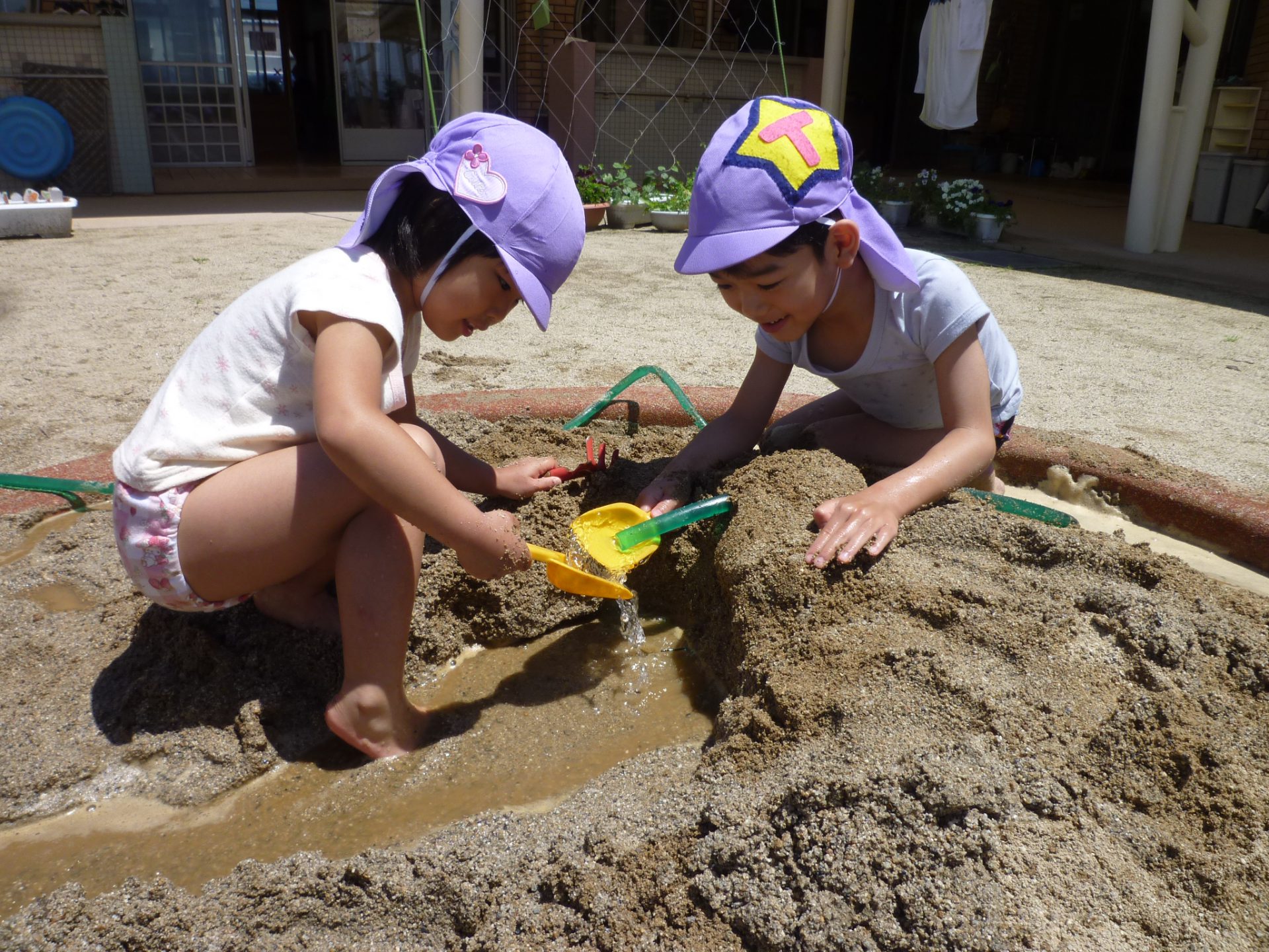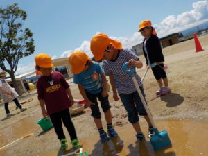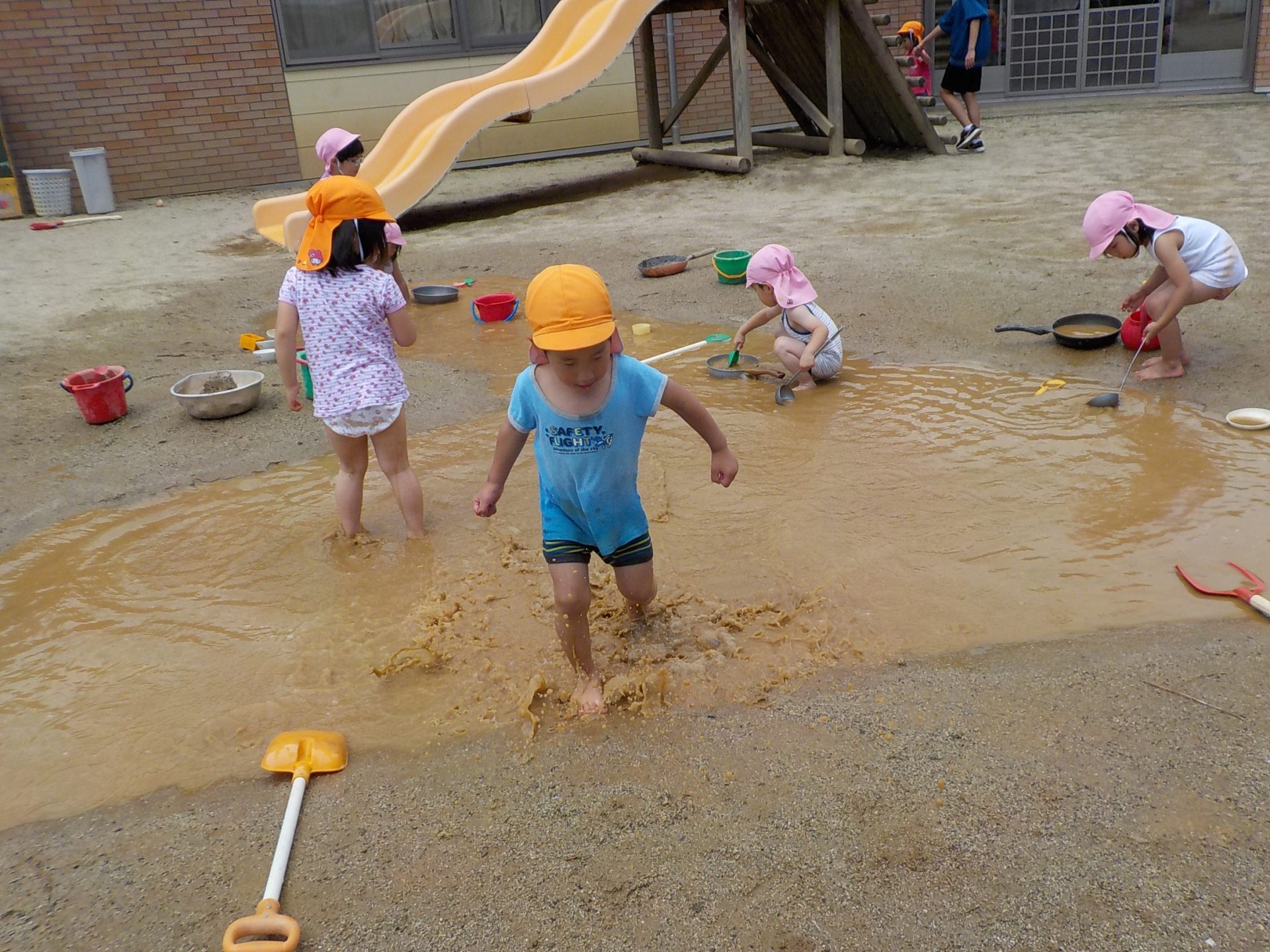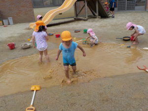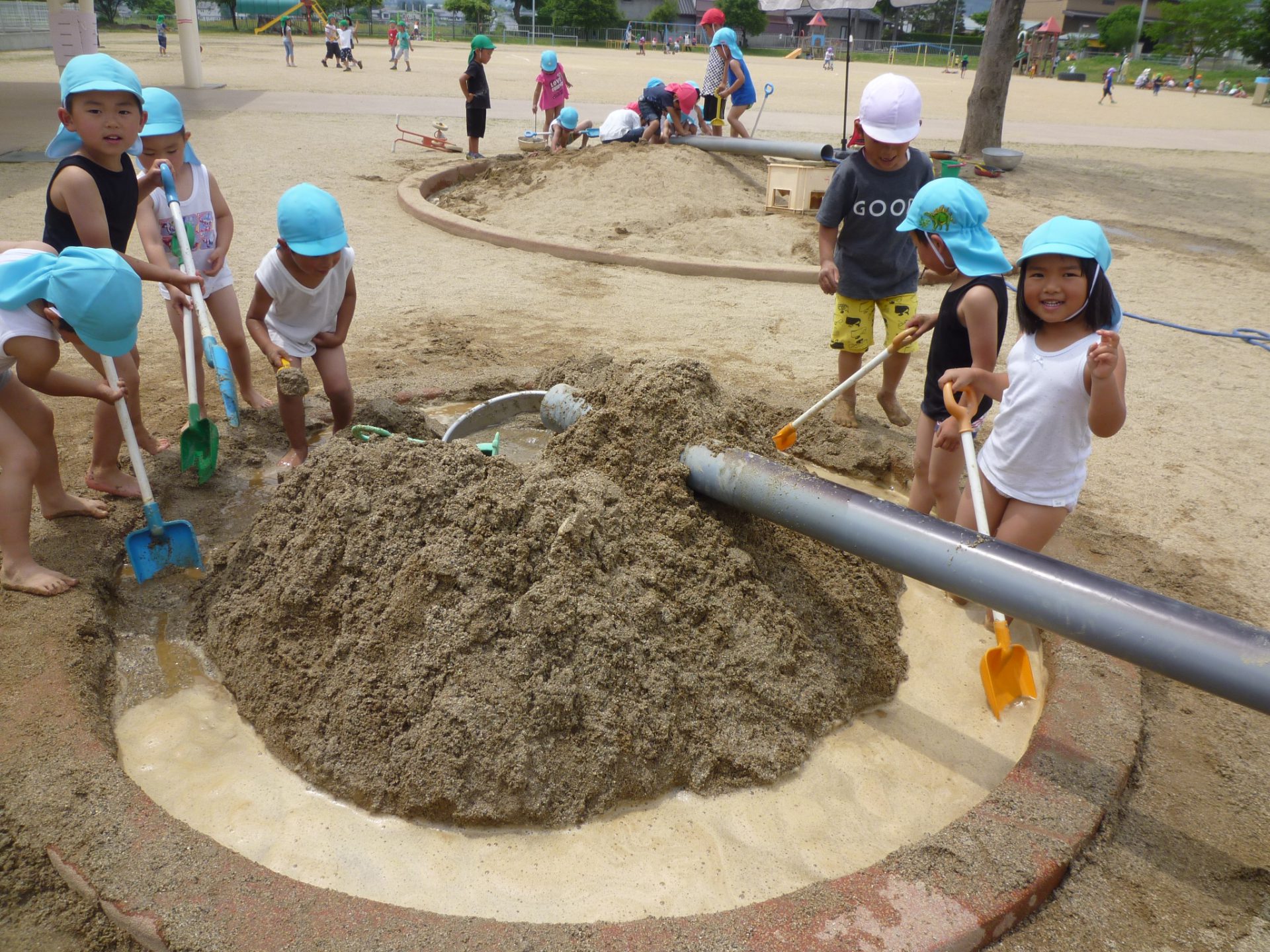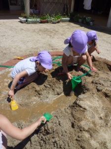 砂や泥、水を使い、色々な遊びを展開する中で、