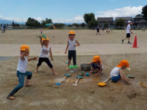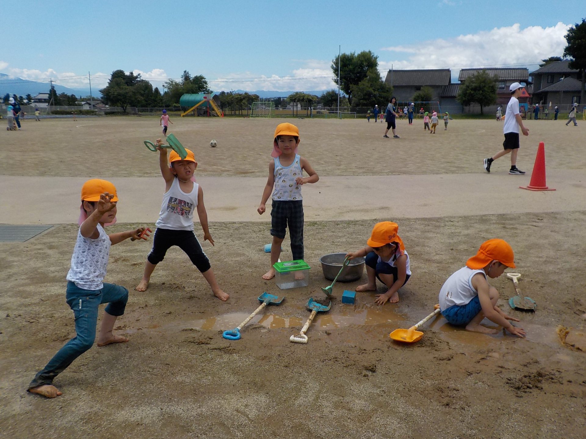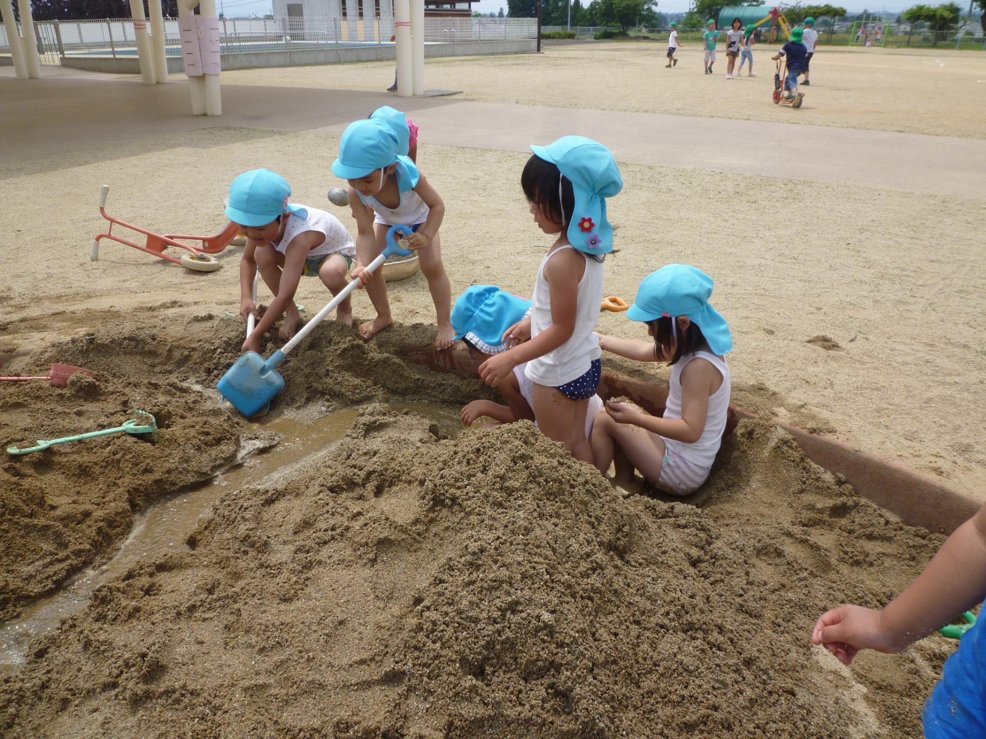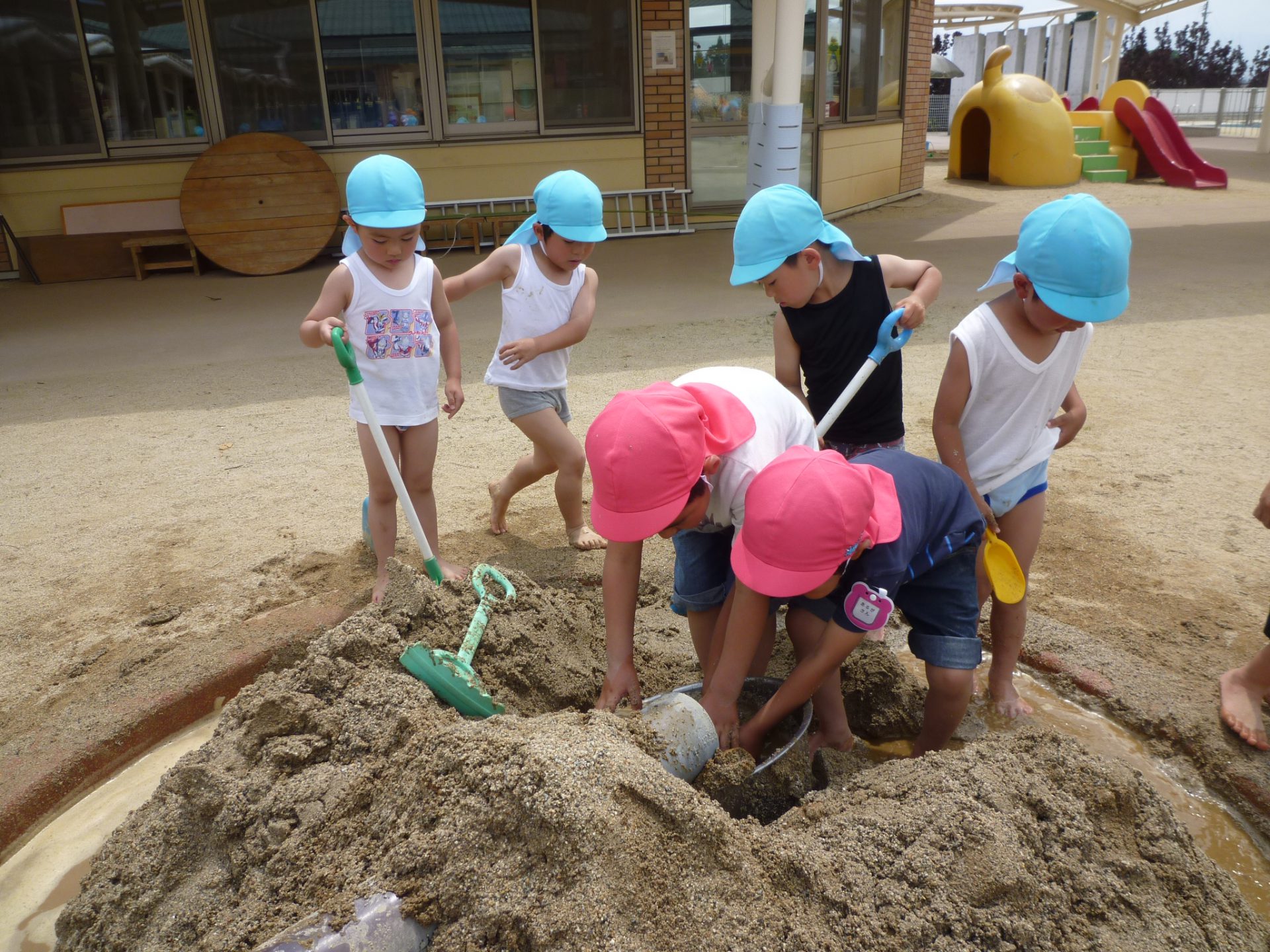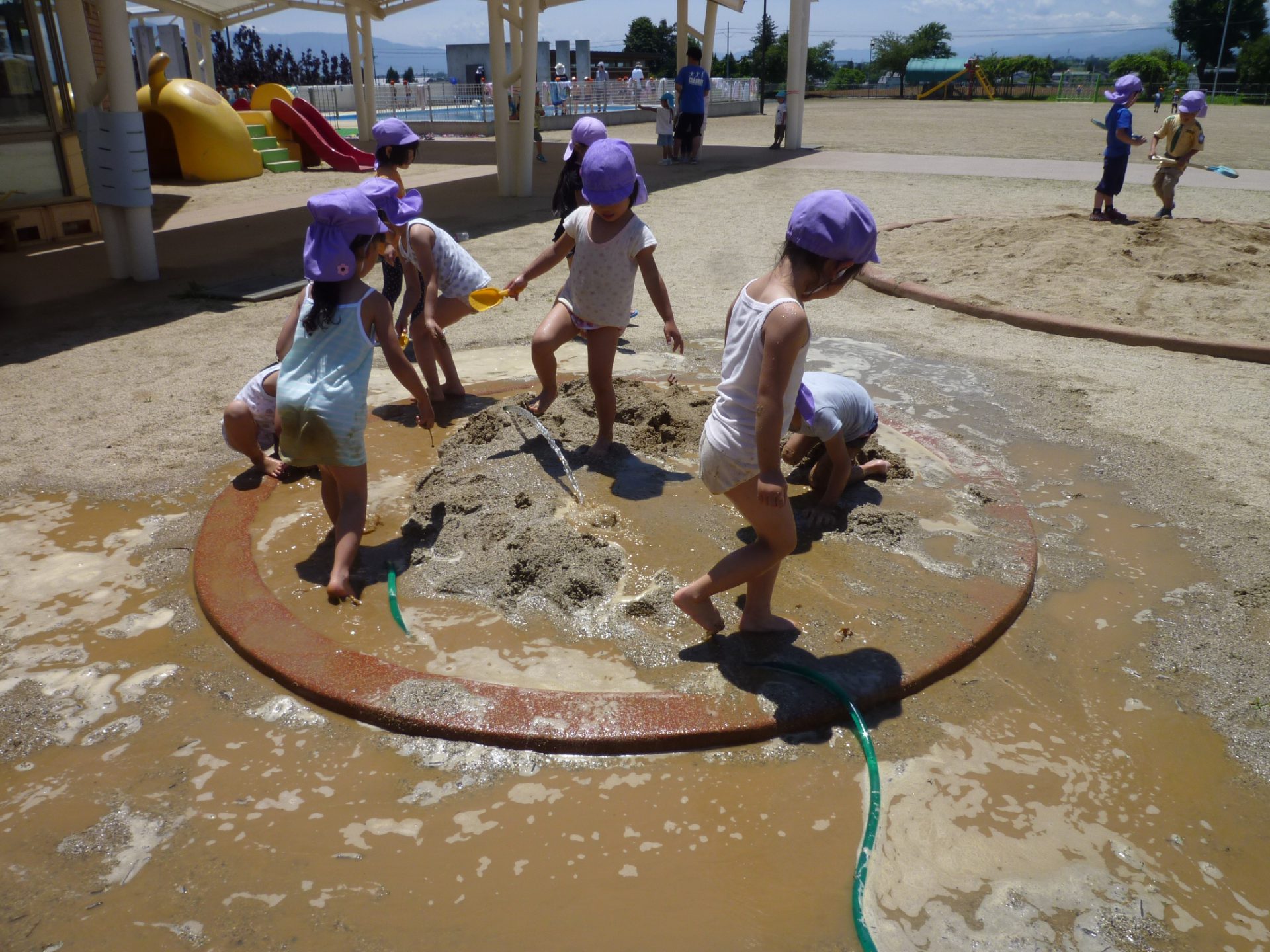 砂や泥、水を使い、色々な遊びを展開する中で、