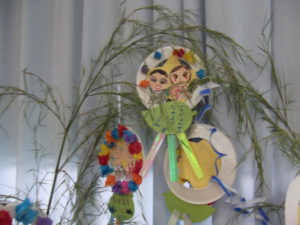 お家に笹のあるお家から、本物の笹をいただきました。笹の香り、枝に触れて子どもたちは楽しそうに製作に取り組んでいました。